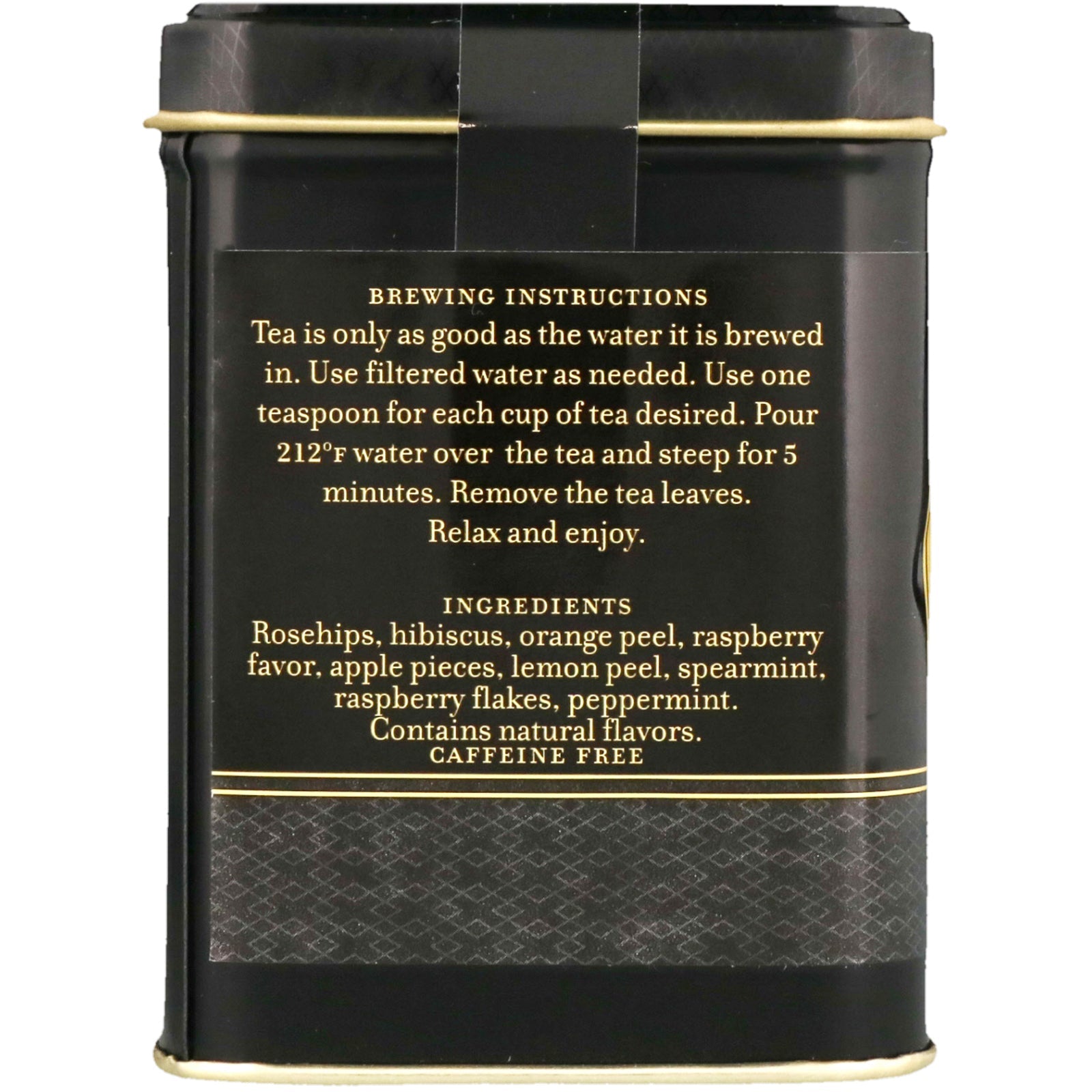 Fine Teas John Harney Master Tea Blender Effects: Relaxing Caffeine Content: 0 Milligrams Character: Beautiful red color with great raspberry flavor. A delicious, fruity caffeine-free beverage. Harney & Sons: from tea garden to tea cup…in 1970 John