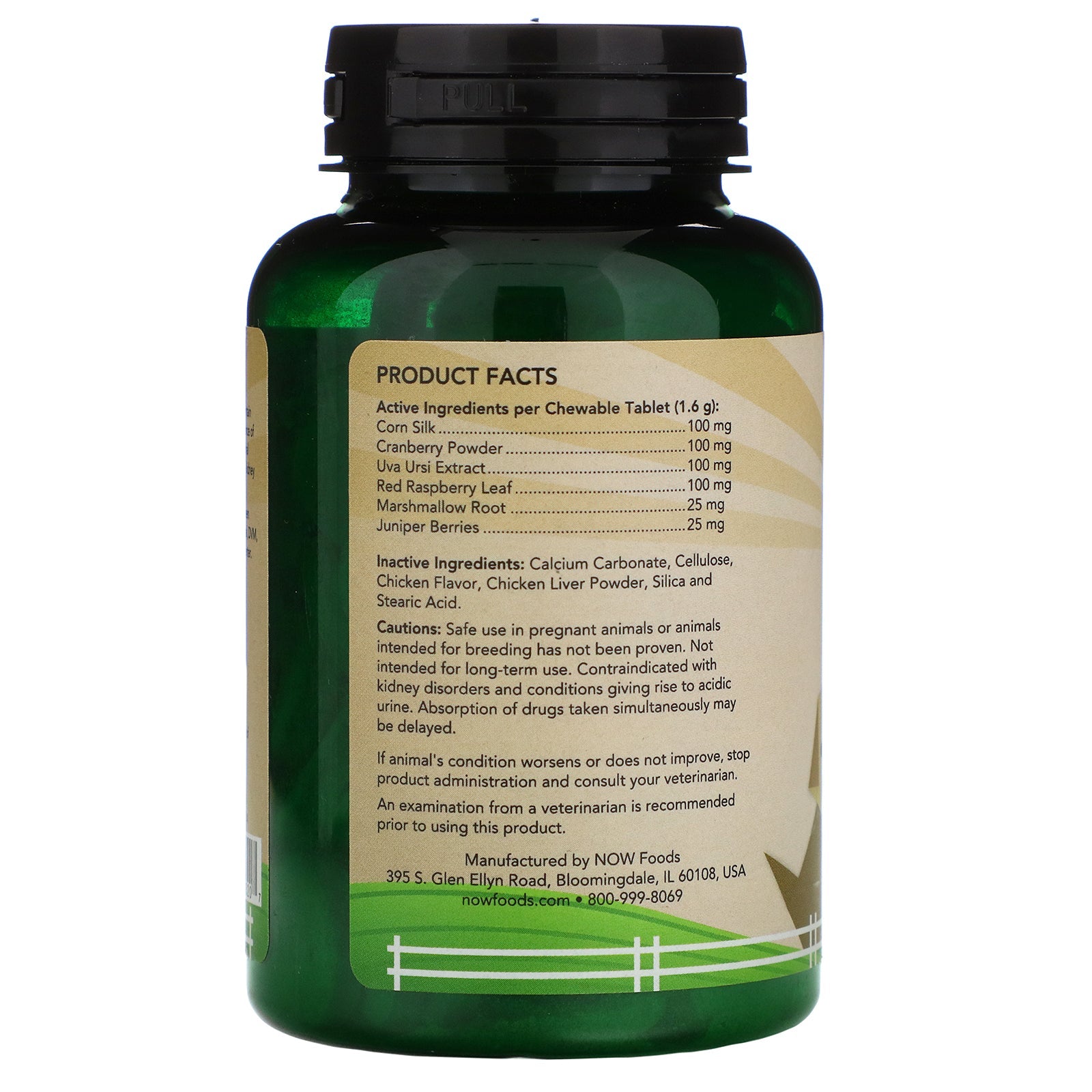Helps Maintain Normal Function of the Urinary Tract Veterinarian Recommended Quality Seal - NASC - National Animal Supplement Council For Use in Dogs and Cats Only Gluten Free NOW® Pets Urinary Support is formulated to help maintain normal urinary pH, which may help reduce the occurrence of urinary crystal formation. It also helps to maintain normal urinary tract function and may help to support normal kidney detoxification processes. Urinary Support contains natural botanicals and has been formulated by renowned veterinarian Dr. Barbara Royal, DVM, CVA, Founder of The Royal Treatment Veterinarian Center.Sugg. UseUp to 20 lbs. 1/2 tablet twice daily 21 to 40 lbs. 1 tablet twice daily 41 to 80 lbs. 2 tablets twice daily Over 81 lbs. 3 tablets twice dailyOther IngredientsActive Ingredients per Chewable Tablet (1.6 g) Corn Silk 100 mg` Cranberry Powder 100 mg Uva Ursi Extract 100 mg Red Raspberry Leaf 100 mg Marshmallow Root...
