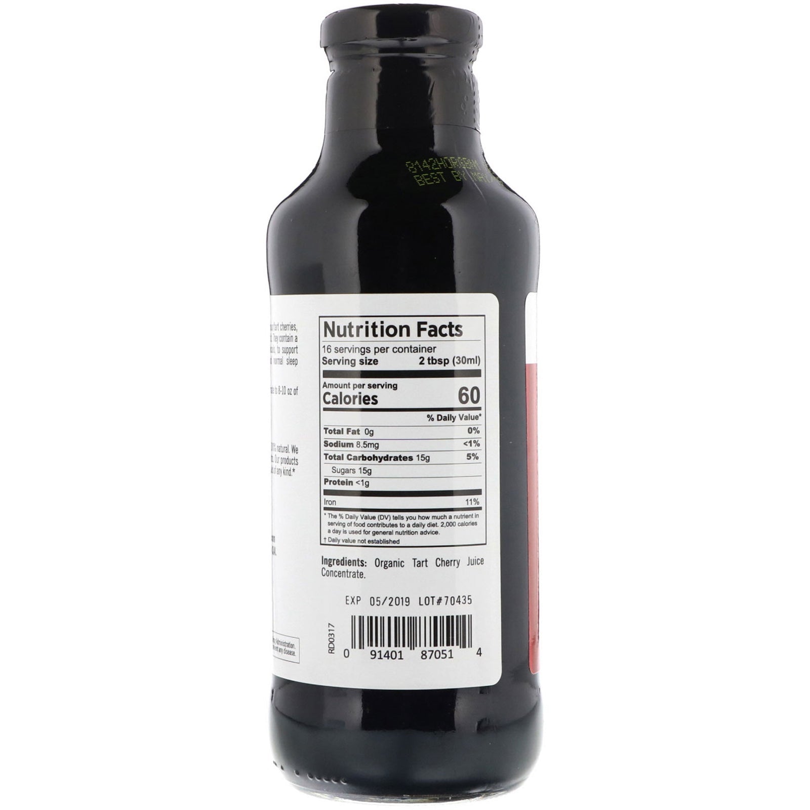 With High Orac & Antioxidants Gluten Free USDA Non-GMO Vegan Soy Free Tart Cherry is Certified by QAI Tart Cherry Juice Concentrate is made from sour/tart cherries, which are nature’s most nutritionally dense fruit. They contain a wide variety of antioxidants and phytochemicals, to support optimum health, healthy joint function and normal sleep patterns. Pure Planet Products are Pure, Non GMO and 100% natural. We use no binders, fillers, excipients or flow agents. Our products never contain pesticides, herbicides or chemicals of any kind.Sugg. UseAdd 2 tbsp (1 oz) of concentrate to 8-10 oz of water or juice and drink daily.Other Ingredients tart cherry juice concentrate.Supplement FactsServing Size: 2 tbsp (30 ml) Servings Per Container: Approx. 16 Amount Per Serving % Daily Value* Calories 60 Total Fat 0 g 0% Sodium 8.5 mg <1 g Total Carbohydrate 15 g 5% Sugars 15 g Protein <1 g Iron 11% *The %...