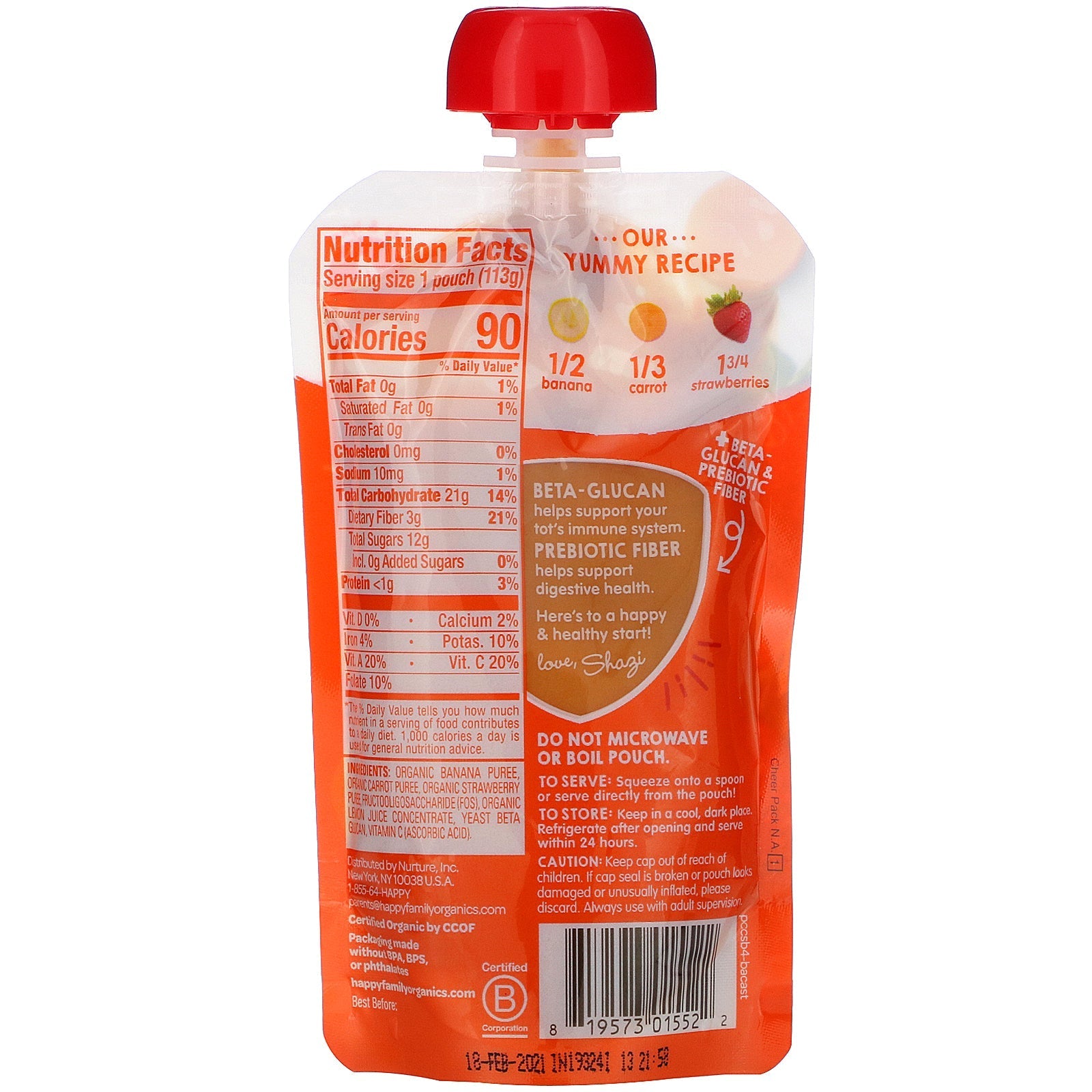 Happy Family s, Happy Tot, Super Bellies, Bananer, Gulerødder og Jordbær, 4 oz (113 g)