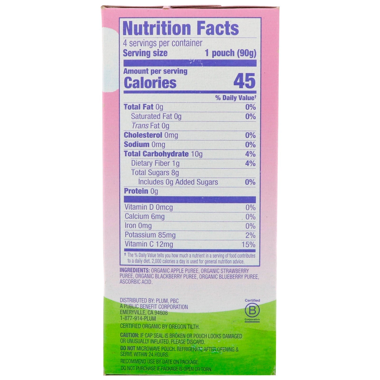 Klar bundpose! Intet tilsat sukker!* God kilde til Vit C Ikke-GMO-projekt verificeret USDA-certificeret Kosher-certificeret B Corporation - Using Business As A Force for Good Certificeret af Oregon Tilth Feed Amazing Squeeze mest ud af snacktiden! En børnevenlig blanding af æblemos punched op med nærende frugter. Det er en lækker måde at brænde på uden tilsat sukker. Betyder noget? Det tror vi, især da mange frugter tester markant lavere for pesticidrester sammenlignet med ikke-frugter. Plus, ingen GMO'er tilladt! *Ikke en kaloriefattig mad. Se ernæringsfakta for information om sukker og kalorieindhold. Sugg. Brug Andre ingredienser æblemos, jordbærpuré, brombærpuré, blåbærpuré, ascorbinsyre. Supplerende Fakta Portionsstørrelse: 1 pose (90 g) Portioner pr. beholder: 4 Mængde pr. portion % daglig værdi † Kalorier 45 Total fedt 0 g 0% mættet fedt 0 g 0% transfedt 0 g Kolesterol 0 mg 0% Natrium 0 mg 0% Total Kulhydrat 10 g 4 % Kostfibre 1 g 4 %...