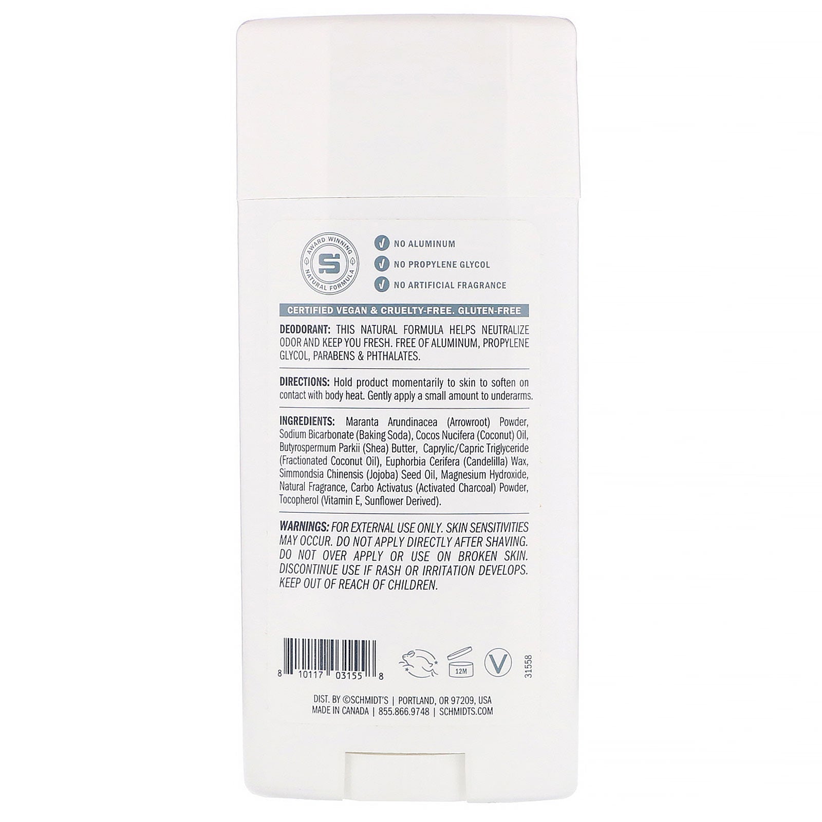 Prisvindende naturlig formel Ingen aluminium Ingen propylenglycol ingen parabener og phthalater Ingen kunstig duft med aktivt kul certificeret vegansk og grusomhedsfri glutenfri Denne naturlige formel hjælper med at neutralisere lugt og holde dig frisk. Sugg. Brug Hold produktet et øjeblik mod huden for at blive blødt ved kontakt med kropsvarme. Påfør forsigtigt en lille mængde på armhulerne. Andre ingredienser Maranta arundinacea (arrowroot) pulver, natriumbicarbonat (bagepulver), cocos nucifera (kokos) olie, butyrospermum parkii (shea) smør, caprylsyre/capric triglycerid (fraktioneret kokosolie), euphorbia cerifera (candelilla) voks, simmondsia cybachinensis (jojobachinensis) frøolie, magnesiumhydroxid, naturlig duft, carob activatus (aktiveret kul) pulver, tocopherol (vitamin E, solsikke-afledt) Supplerende Fakta Ansvarsfraskrivelse Mens VitaminsUK bestræber sig på at sikre nøjagtigheden af sine produktbilleder og informationer, kan nogle fremstillingsændringer af emballage og/eller ingredienser afvente opdatering på vores websted. Selvom varer lejlighedsvis sendes med alternativ emballage, er friskhed altid garanteret. Vi anbefaler, at du læser etiketter, advarsler og anvisninger for alle produkter før brug...