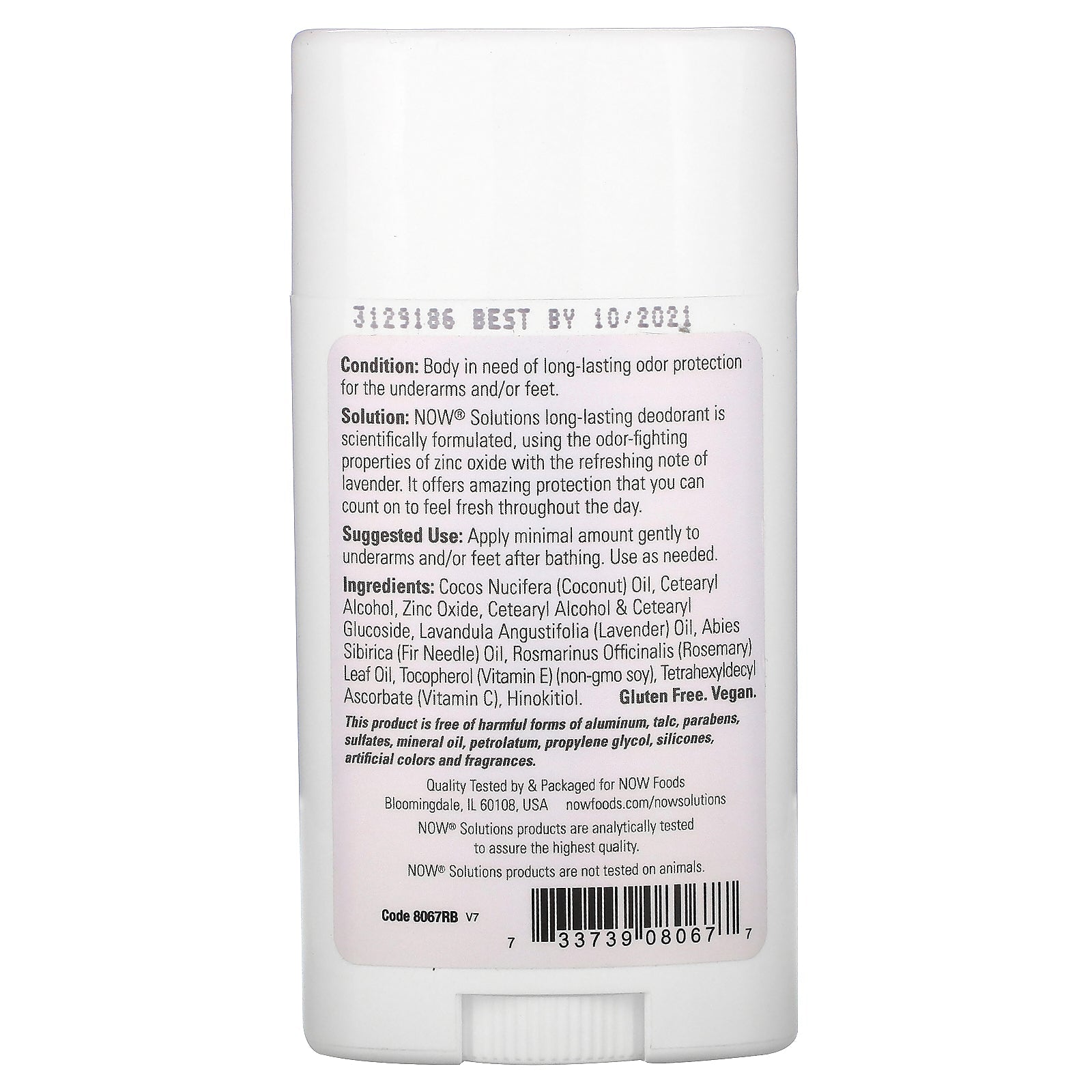 Now Foods, Solutions, Langtidsholdbar Deodorant Stick, Forfriskende Lavendel, 2,2 oz (62 g)