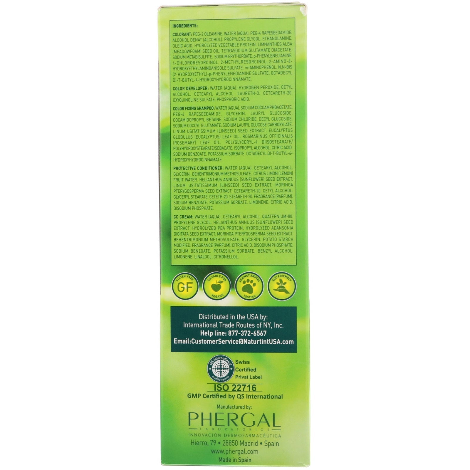 Farvestof: Peg-2 oleamin, vand (aqua), peg-4 rapsamid, alkohol denat (alkohol), propylenglycol, ethanolamin, oliesyre, hydrolyseret vegetabilsk protein, limnanthes alba (engfoam) frøolie, tetranatriumglutamat diacetat, natriummetabisulfit, natriumerythorbat, p-phenylendiamin, 4-chlorresorcinol, 2-methylrescorcinol, 2-amino-4-hydroxyethylaminoanisolsulfat, m-aminophenol, nn-bis [2-hydroxyethyl] – p-phenylendiaminsulfat, octadecyl di-t-butyl-4 -hydroxyhydrocinnamat. Farvefremkalder: Vand (aqua), hydrogenperoxid, cetylalkohol, cetearylalkohol, laureth-3, ceteareth-20, oxyquinolinsulfat, fosforsyre. Color Fixing Shampoo: Vand (aqua), natriumcocoamfoacetat, peg-4 rapsamid, glycerin, laurylglucosid, cocamidopropylbetain, natriumchlorid, decylglucosid, natriumcocoylglutamat, natriumlaurylglucosecarboxylat, linum usitatissimum, linum usitatissimum. (eukalyptus) bladolie, rosmarinus officinalis (rosmarin) bladolie, polyglyceryl-4 diisostearat/polyhydroxystearat/sebacat, isopropylalkohol, citronsyre, natriumbenzoat, kaliumsorbat, octadecyl di-t-butyl-4-hydroxyhydrocinnamat. Beskyttende balsam: Vand (aqua), cetearylalkohol, glycerin, behentrimonium methosulfat, citrus limon (citron) frugtvand, helianthus annuus (solsikke) frøekstrakt, linum usitatissimum (hørfrø) frøekstrakt, moringa pterygosperma frøekstrakt, ceteareth-20, ceteareth alkohol, glycerylstearat, ceteth-20, steareth-20, duft (parfum), natriumbenzoat, kaliumsorbat, limonen, citronsyre, dinatriumphosphat. CC Cream: Vand (aqua), cetearylalkohol, quaternium-80, propylenglycol, helianthus annuus (solsikke) frøekstrakt, hydrolyseret ærteprotein, hydrolyseret adansonia digitata frøekstrakt, moringa pterygosperma frøekstrakt, behentrimonium methosulfat, kartoffelstjernemodificeret, kartoffel glycer duft (parfume), citronsyre, dinatriumphosphat, natriumbenzoat, kaliumsorbat, benzylalkohol, limonen, linalool, citronellol. Naturtint indeholder den mindst mulige mængde ingredienser, der er nødvendige for at skabe en permanent hårfarve, såsom p-phenylendiamin (PPD) og hydrogenperoxid, mens de forbliver fri af parabener, natriumlaureth (SLS) og cocamid DEA. Supplerende Fakta