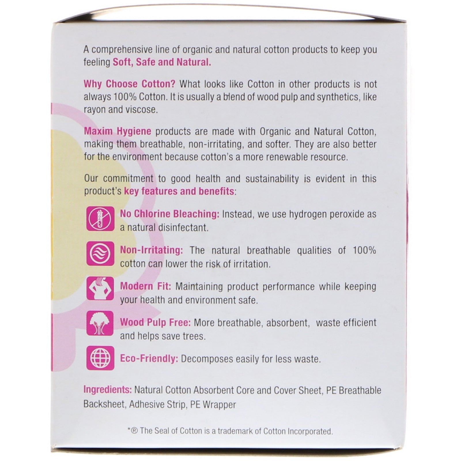 Naturlig bomuld Blød, sikker og naturlig Et sundt og rent bomuldsalternativ Ingen klorblegning Ikke-irriterende Ingen tilsat dufte eller syntetiske stoffer Better for the Planet En omfattende linje af økologiske og naturlige bomuldsprodukter for at holde dig blød, sikker og naturlig. Hvorfor vælge bomuld? Det, der ligner bomuld i andre produkter, er ikke altid 100 % bomuld. Det er normalt en blanding af træmasse og syntetiske materialer som rayon og viskose. Maxim Hygiene-produkter er lavet af økologisk og naturligt bomuld, hvilket gør dem åndbare, ikke-irriterende og blødere. De er også bedre for miljøet, fordi bomuld er en mere vedvarende ressource. Vores forpligtelse til godt helbred og bæredygtighed er tydeligt i dette produkts nøglefunktioner og fordele: Ingen klorblegning - I stedet bruger vi hydrogenperoxid som naturligt desinfektionsmiddel. Ikke-irriterende - De naturlige åndbare egenskaber af 100% bomuld kan mindske risikoen for irritation. Modern Fit - Opretholdelse af produktets ydeevne, mens du holder dit helbred og miljø sikkert. Træmassefri - Mere åndbar, absorberende, spildeffektiv og hjælper med at redde træer. Miljøvenlig - Nedbrydes let for mindre spild. Unikke design for mere komfort og bedre beskyttelse 100 % naturlig bomuld Absorberende kerne Åndbar lækagebeskyttelse Baglag klæbestrimmel 100 % naturlig bomuld Dækplade Lækagekontrolkanaler bevinget individuelt indpakket