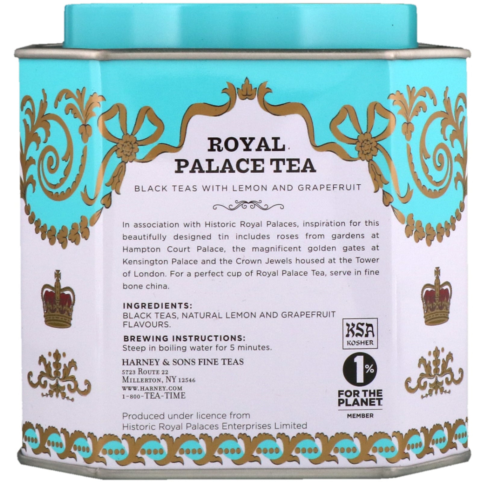 Sorte teer med citron og grapefrugt Kosher I 1660 fik dagbogsskriveren Samuel Pepys fra det 17. århundrede sin første 'Cupp of Tee, en Kina-drik' nogensinde, som dengang kun blev introduceret til Storbritannien. Katarina af Braganza, Charles dens te-drikkende dronning, gjorde det på mode. Dronning Anne ville ofte nyde en kop te på Hampton Court Palace, og dronning Charlottes sønners dobbeltbryllup i Kew i 1818 blev fejret med et teselskab. Indtil afskaffelsen af importafgifterne i 1784 var te det dyre forbehold for kongelige og rige. På trods af sin allestedsnærværende i senere tid, er te en virkelig historisk, kongelig drikkevare. I forbindelse med historiske kongelige paladser omfatter inspirationen til denne smukt designede dåse roser fra haver ved Hampton Court Palace, de storslåede gyldne porte ved Kensington Palace og kronjuvelerne i Tower of London. For en perfekt kop Royal Palace Tea, server i fint benporcelæn. Sugg. Brug Bryggevejledning: Træk i kogende vand...