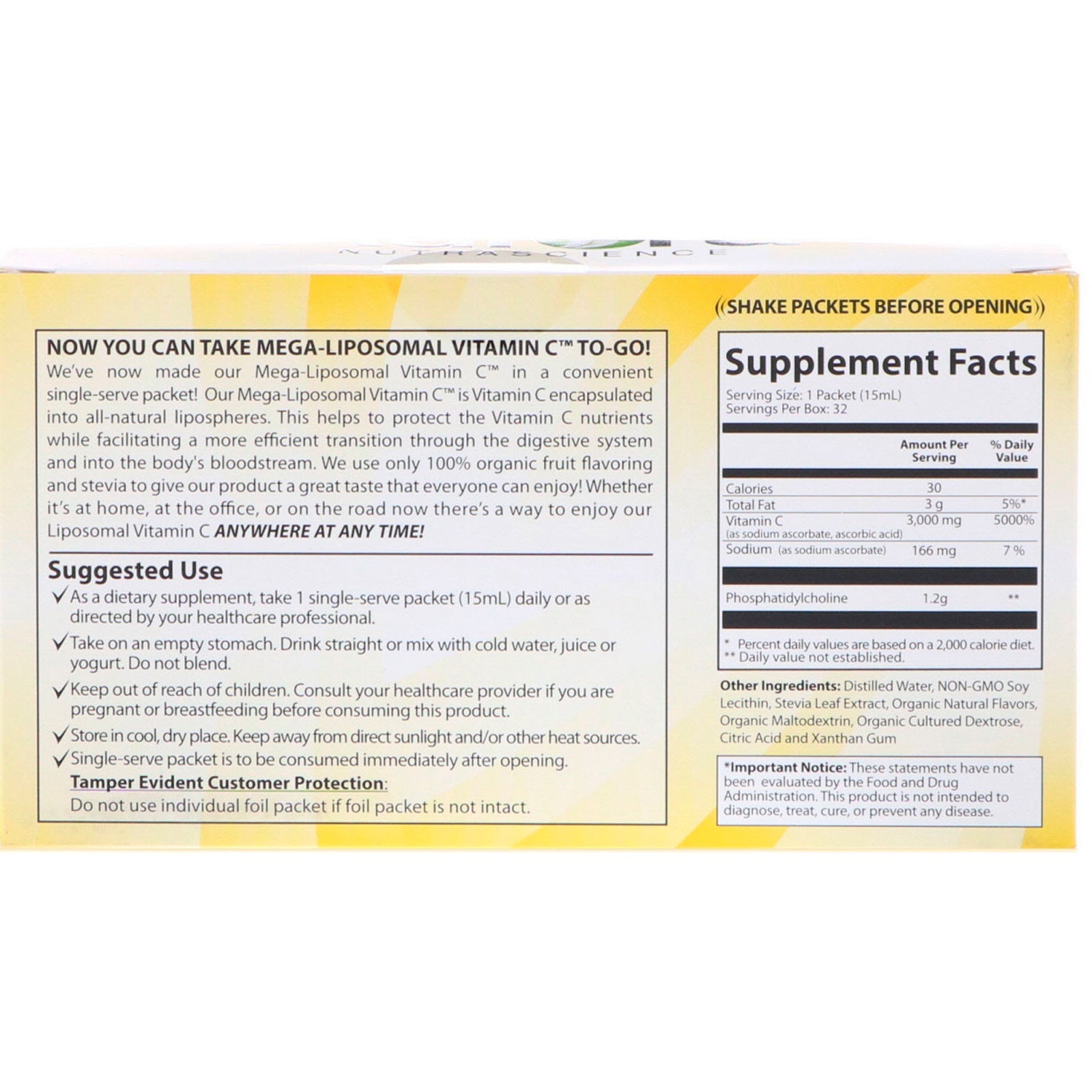 Aurora Nutrascience, Mega-liposomal C-vitamin, 3.000 mg, 32 enkelt-serve væskepakker, 0,5 fl oz (15 ml) hver