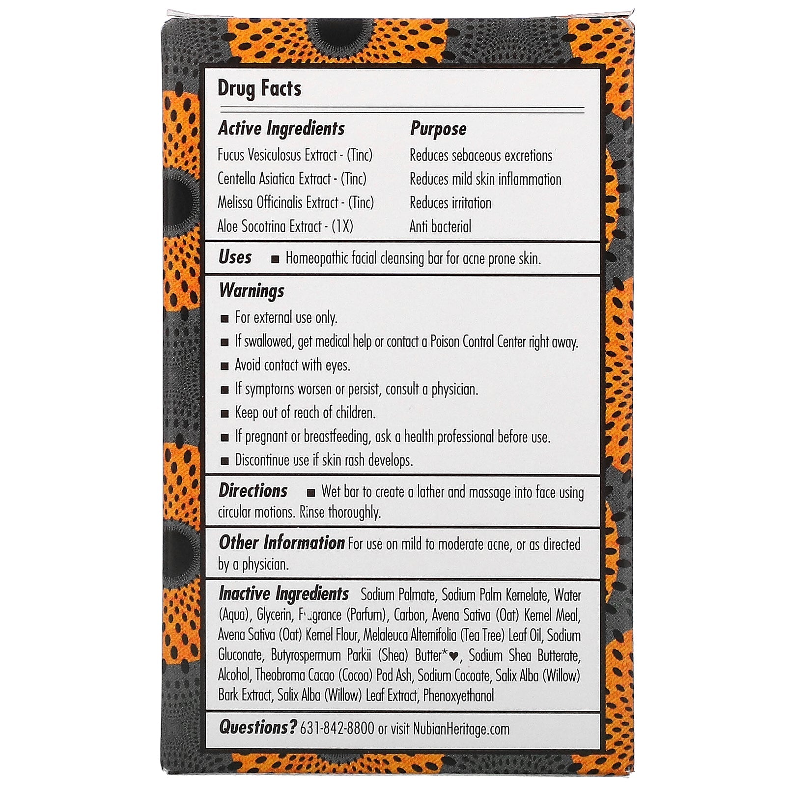 Antiacné y clarificante Elaborada con: aloe vera, avena y árbol de té. Esta suave barra limpiadora facial homeopática elimina naturalmente las bacterias, el exceso de grasa y las impurezas sin resecar ni irritar la piel. El jabón negro africano, el aloe vera, la avena y la vitamina E calman la piel propensa al acné con una espuma rica y cremosa que se enjuaga y deja la piel con una sensación de frescura. Patrimonio Durante siglos, el jabón negro africano, elaborado con ceniza de palma, extracto de tamarindo y cáscara de plátano, se ha utilizado en África para limpiar y cuidar la piel. Las referencias históricas a la manteca de karité, un elemento básico de la farmacología africana, se remontan a las caravanas de manteca de karité del Egipto de Cleopatra. Complementando las propiedades desintoxicantes de los ingredientes. Humble Beginnings Nubian Heritage es una creación de dos vendedores ambulantes de Nueva York. En 1992, recién salidos de la universidad y sin trabajo, Rich y Nyema se embarcaron en la misión de producir lujosos productos naturales a partir de recetas tradicionales africanas con ingredientes orgánicos y de comercio justo. Hoy en día, Nubian Heritage ofrece cientos de productos naturales culturalmente auténticos inspirados en antiguas filosofías curativas globales. Aunque los productos Nubian Heritage ya no se fabrican en bañeras, poco más ha cambiado; la empresa todavía fabrica sus propios productos, todavía utiliza ingredientes de comercio justo y todavía invierte en el comercio comunitario. Usos: Barra limpiadora facial homeopática para pieles con tendencia acneica.