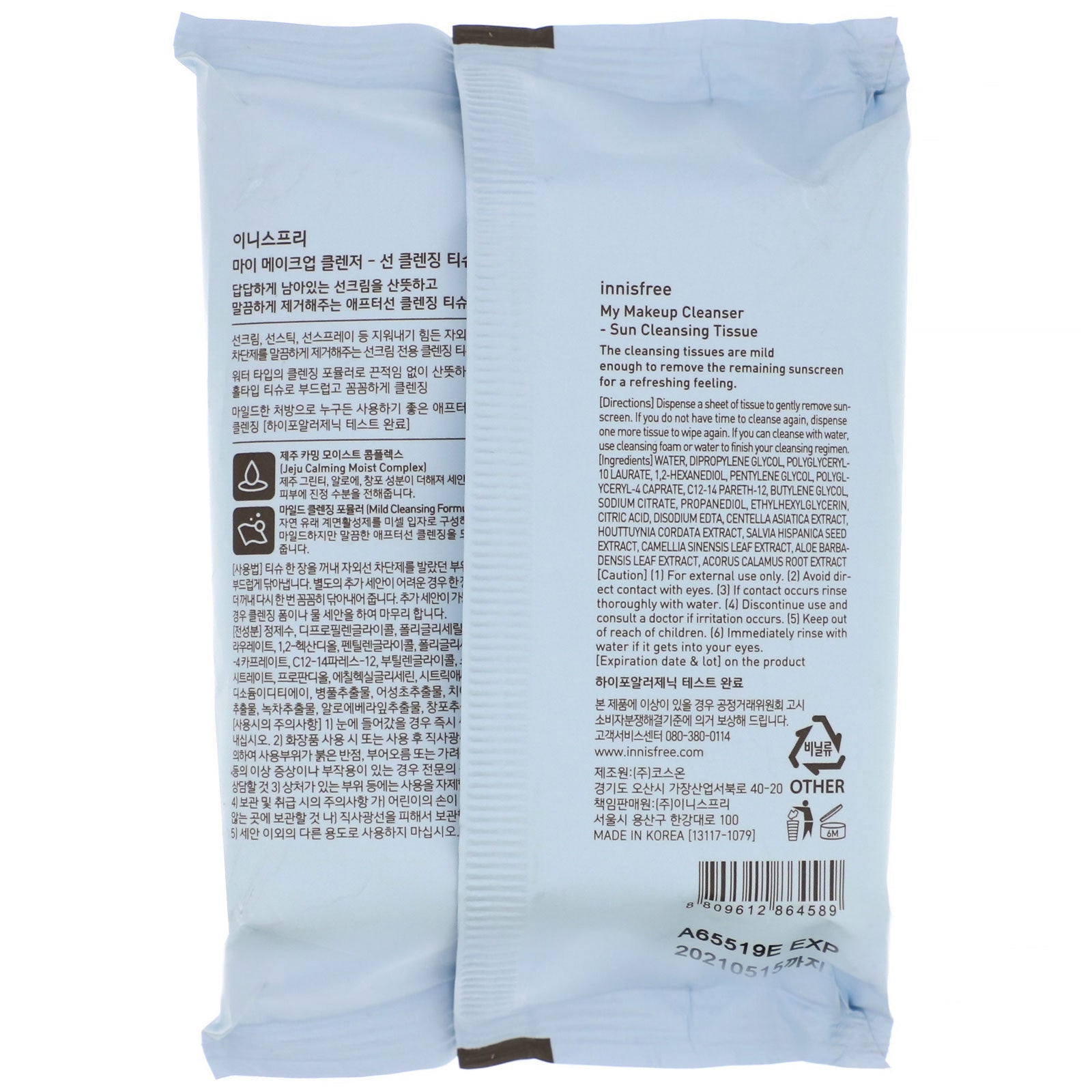 Innisfree, My Makeup Cleanser, pañuelo limpiador solar, 20 hojas, 3,88 oz (110 g)