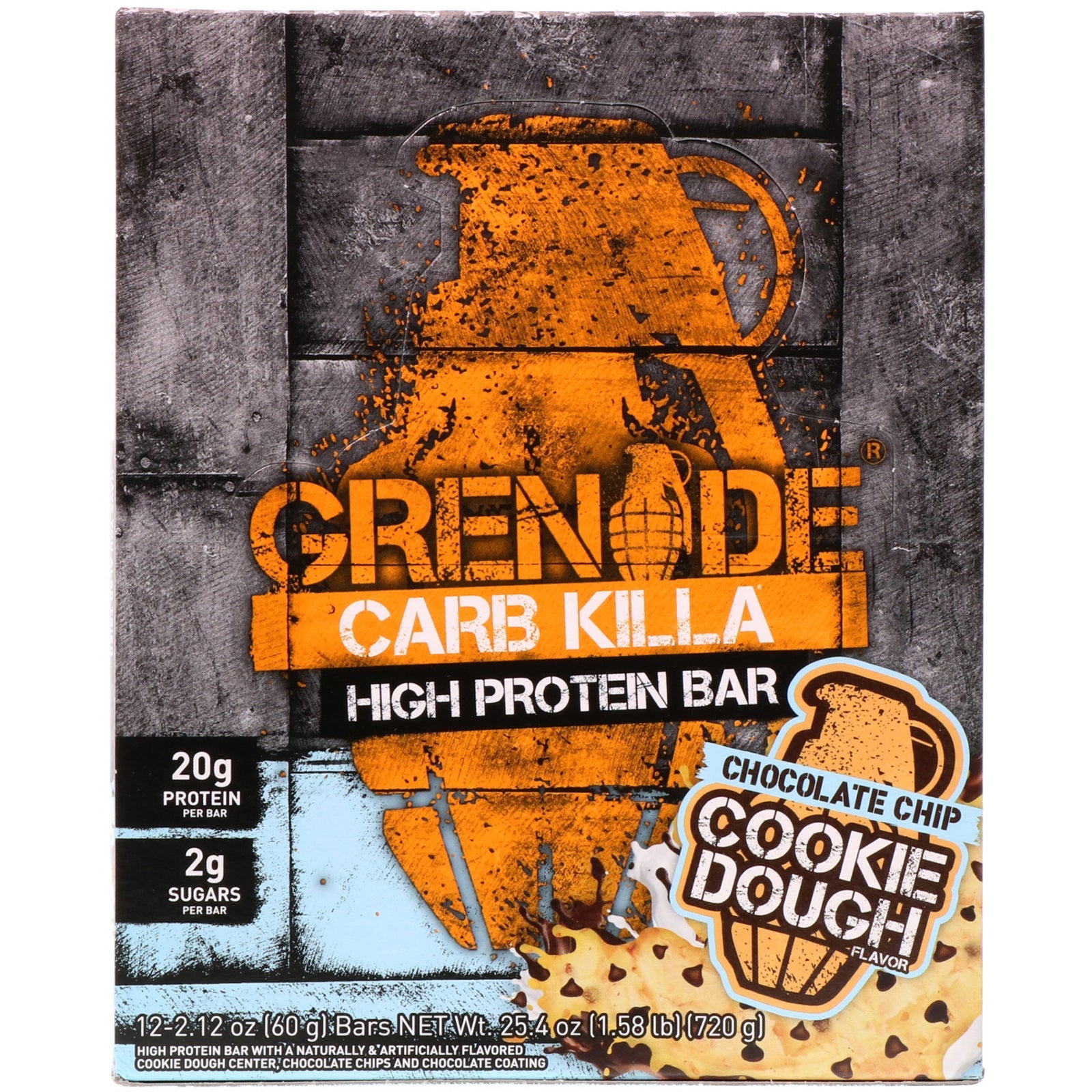 20 g de proteína por barra 2 g de azúcares por barra Barra alta en proteínas con un centro de masa para galletas con sabor natural y artificial, chispas de chocolate y cobertura de chocolate Elección informada - Confiada por Sport Por qué elegir Grenade Carb Killa: una barra de chocolate alta en proteínas y de triple capa . Con 20 g de proteína y 2 g de azúcar, Carb Killa es una forma conveniente de consumir proteínas entre comidas sin agregar carbohidratos no deseados.
