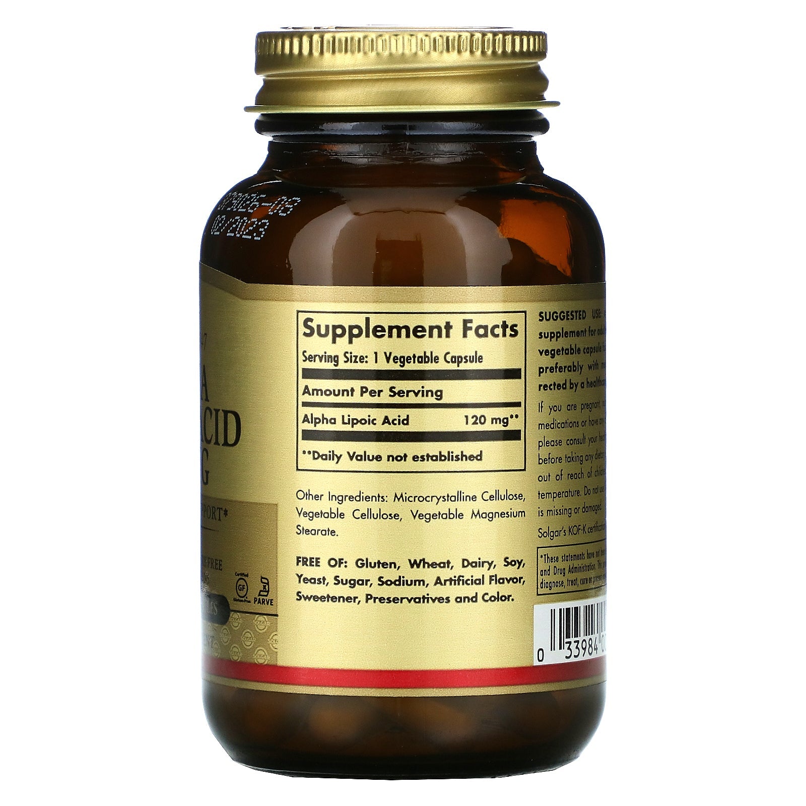 Solgar, Ácido Alfa Lipoico, 120 mg, 60 Cápsulas Vegetales