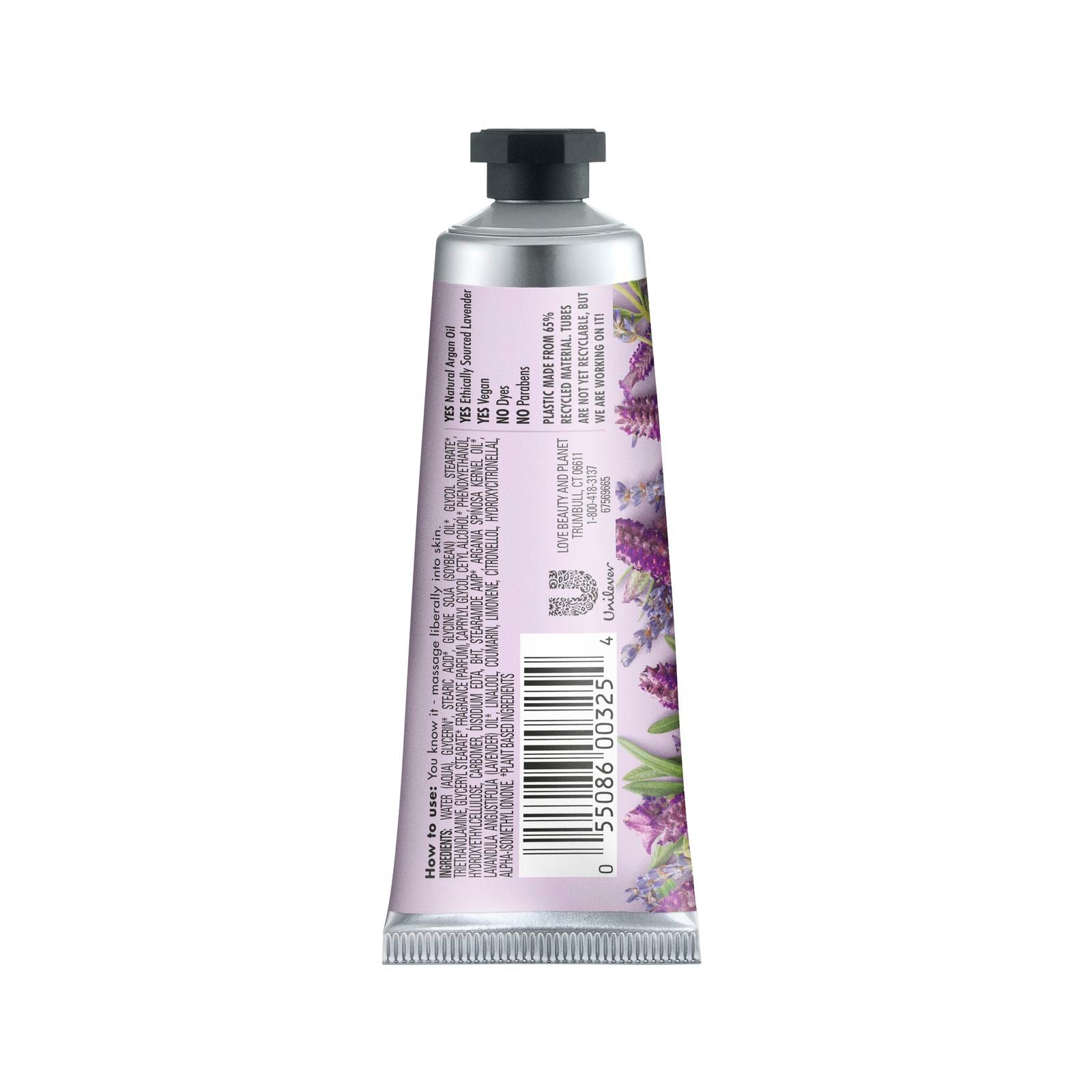Yes Natural Argan Oil Yes Ethically Sourced Lavender Yes Vegan No Dyes No Parabens At Love Beauty and Planet we are committed to acts of love that make you and our planet a little more beautiful, everyday.Sugg. UseYou know it - massage liberally into skin.Other IngredientsWater, glycerin*, stearic acid*, glycine soja (soybean) oil*, glycol stearate*, triethanolamine, glyceryl stearate*, fragrance, caprylyl glycol, cetyl alcohol*, phenoxyethanol, hydroxyethylcellulose, carbomer, disodium edta, bht, stearamide amp*, argania spinosa kernel oil*, lavandula angustifolia (lavender) oil*, linalool, coumarin, limonene, citronellol, alpha-isomethyl ionone, citral, geraniol, coumarin, benzyl alcohol. *Plant based ingredients.Supplement FactsDisclaimerWhile VitaminsUK strives to ensure the accuracy of its product images and information, some manufacturing changes to packaging and/or ingredients may be pending update on our site. Although items may occasionally ship with alternate packaging, freshness is always guaranteed. We recommend that you read labels, warnings and directions of all products before use and not rely solely...