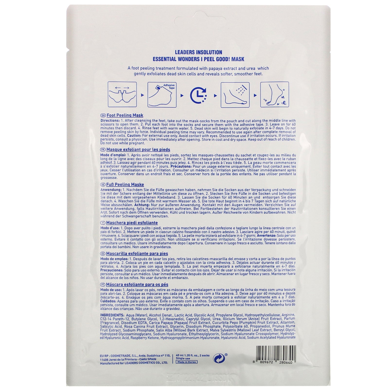 Leaders, Essential Wonders, I Peel Good! Foot Peeling Mask, 2 Socks, 1.35 fl oz (40 ml)