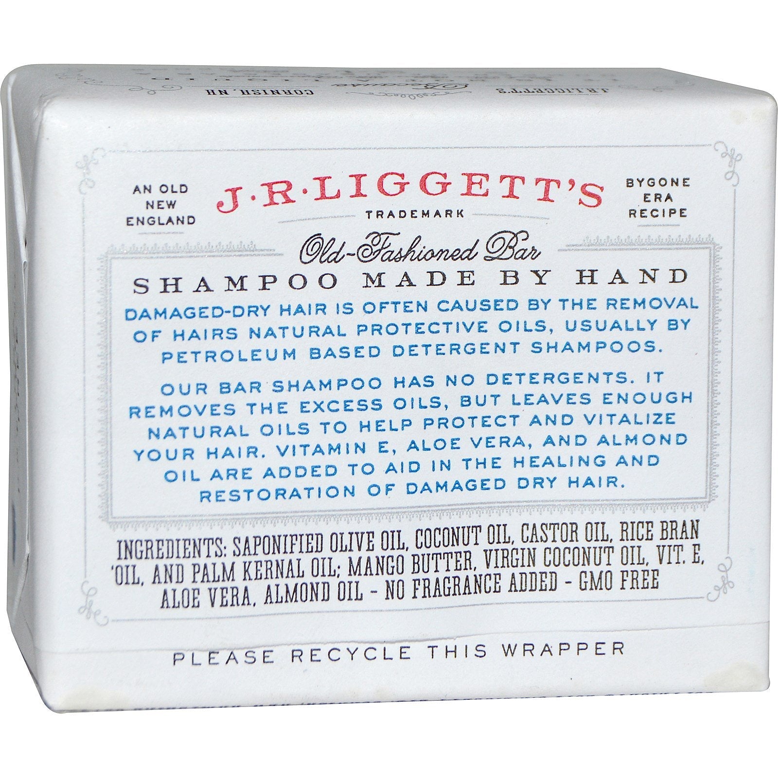 Beautiful Healthy Clean Hair Moisturizing Formula An Old New England Bygone Era Recipe 100% Detergent Free New Minimal Packaging Because it is not a liquid, each bar offers the approximate number of usages as a 24 ounce bottle of most modern shampoos Sham