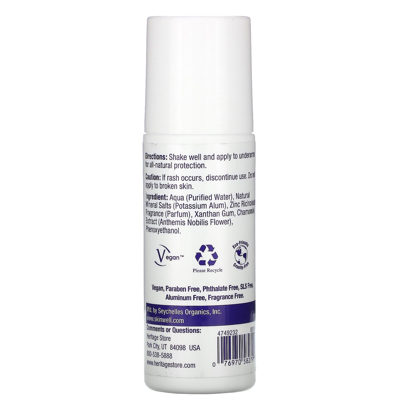 Hypoallergenic Aluminum Free Vegan™ Eco-Friendly Cruelty-FreeSugg. UseShake well and apply to underarms for all-natural protection.Other IngredientsAqua (purified water), natural mineral salts (potassium alum), zinc ricinoleate, fragra