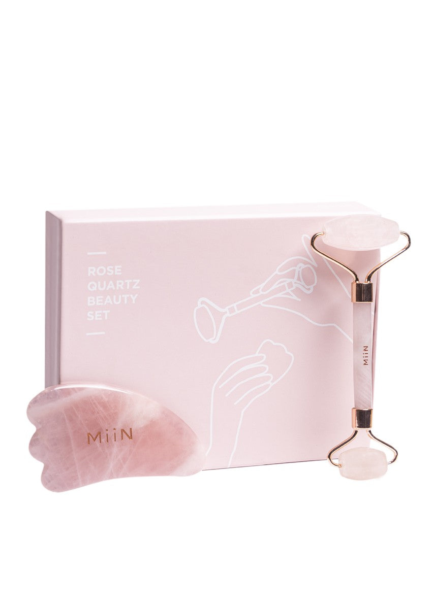 Tone your facial muscles, promote lymphatic drainage and increase blood circulation - all with the help of the Rose Quartz Roller and Gua Sha. Rose quartz is commonly referred to as the ‘love stone' with powerful healing properties that can help to increase self-love and release negative emotions. The daily massage will stimulate collagen production, contour the facial structure and address puffiness and wrinkles. Use a serum or moisturiser to help the tool glide across your skin and improve product absorption. To tighten pores, keep the set in the fridge for a cooling effect on the skin. Use: Use to promote microcirculation, skin elasticity and lymphatic drainage. Skin type: All skin types Ingredients: Rose Quartz Crystal How to use: With a light hand, roll your neck in upward motion first to clear the lymph passageways before starting on your face. Use the Gua Sha to massage your face to promote...