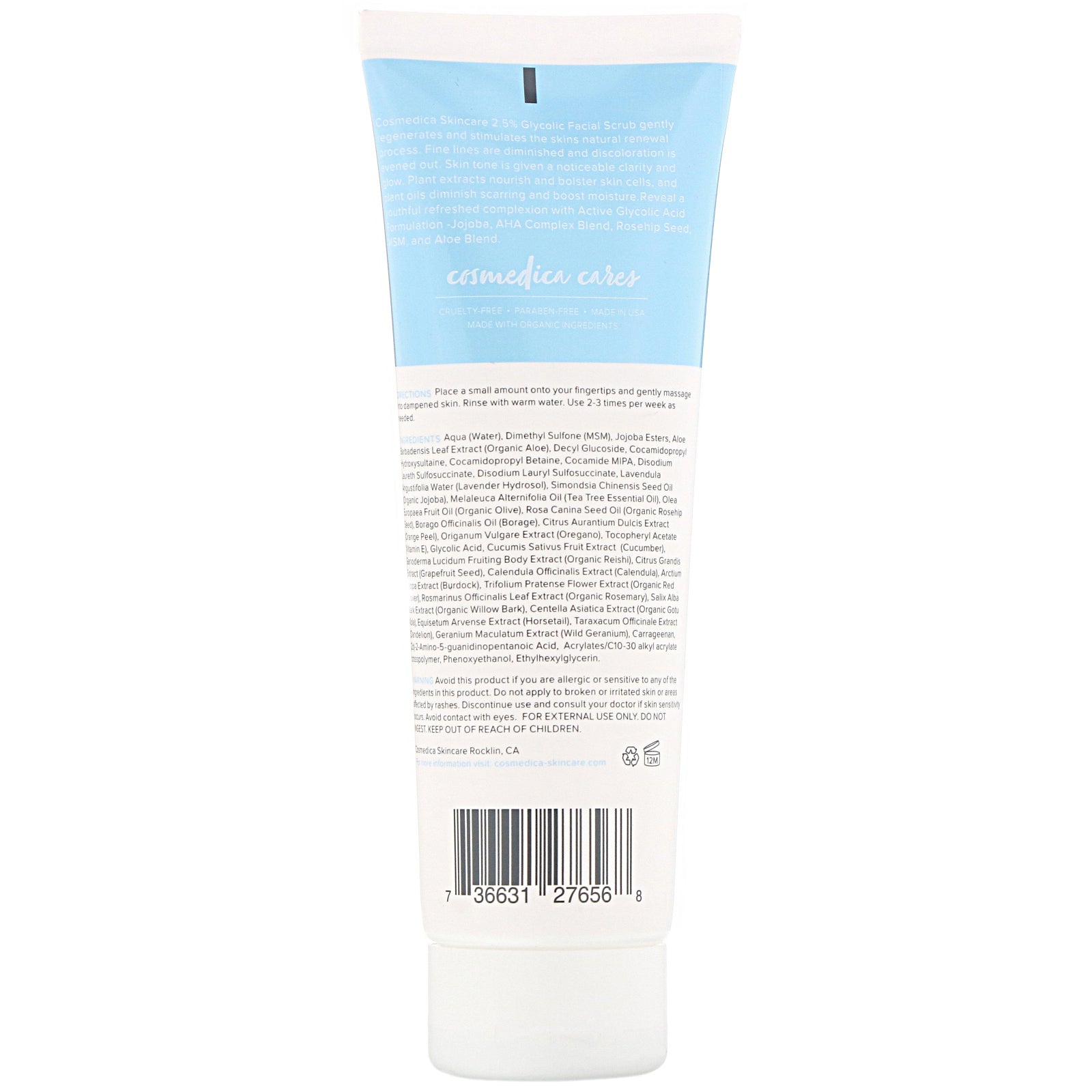 "It's Just the Right Amount of Exfoliation Perfection!" Clear Pores and Polish Skin to Reveal a Brighter and More Even Complexion AM/PM Cosmedica Cares Cruelty Free Paraben Free Made with Organic Ingredients Cosmedica Skincare 2.5 Glycolic Facial Scrub ge