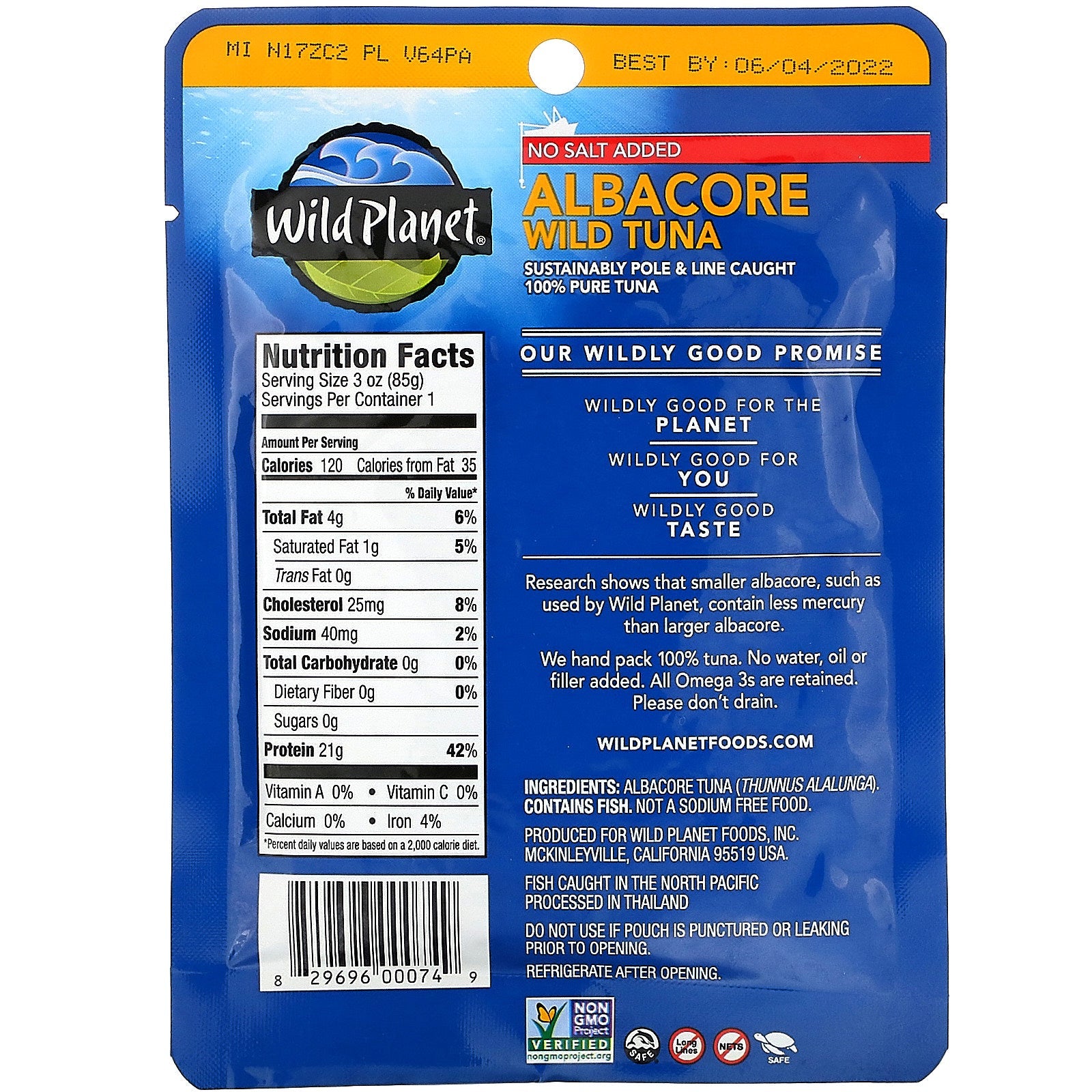 Wild Planet, Albacore Wild Tuna, No Salt Added, 3 oz (85 g)
