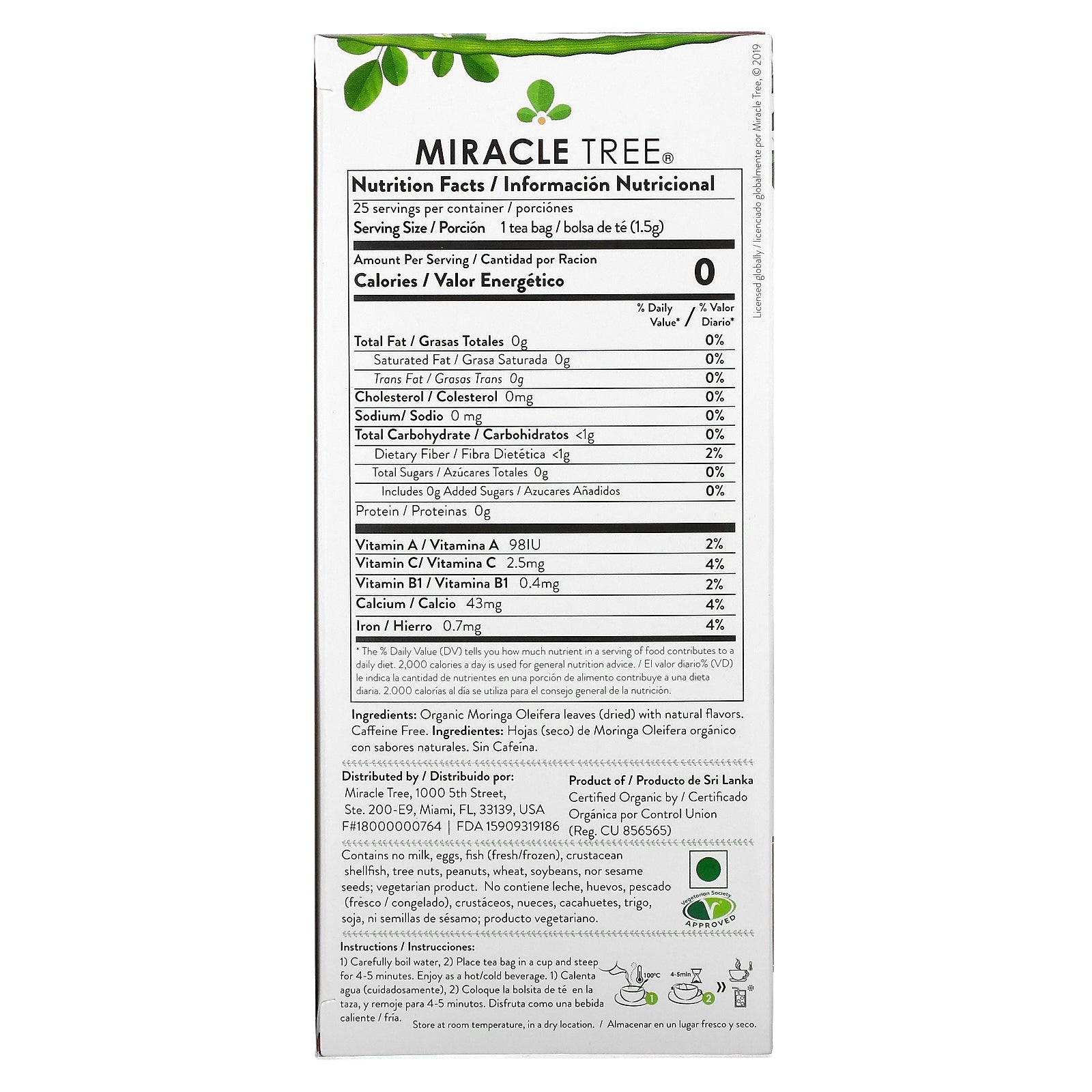 Contains Antioxidant & Amino-Acids USDA Caffeine Free Bleach Free Certified by Control Union Vegetarian Society Approved Gluten Free No GMOs Why you should choose our teas? Miracle Tree is an award-winning, family owned superfood brand. We first sta