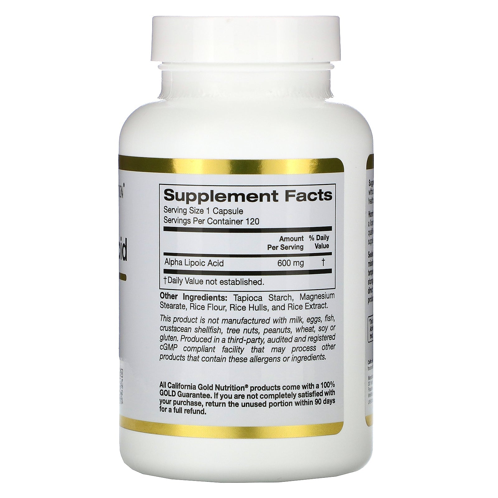 California Gold Nutrition, Alpha Lipoic Acid, 600 mg, 120 Veggie Capsules