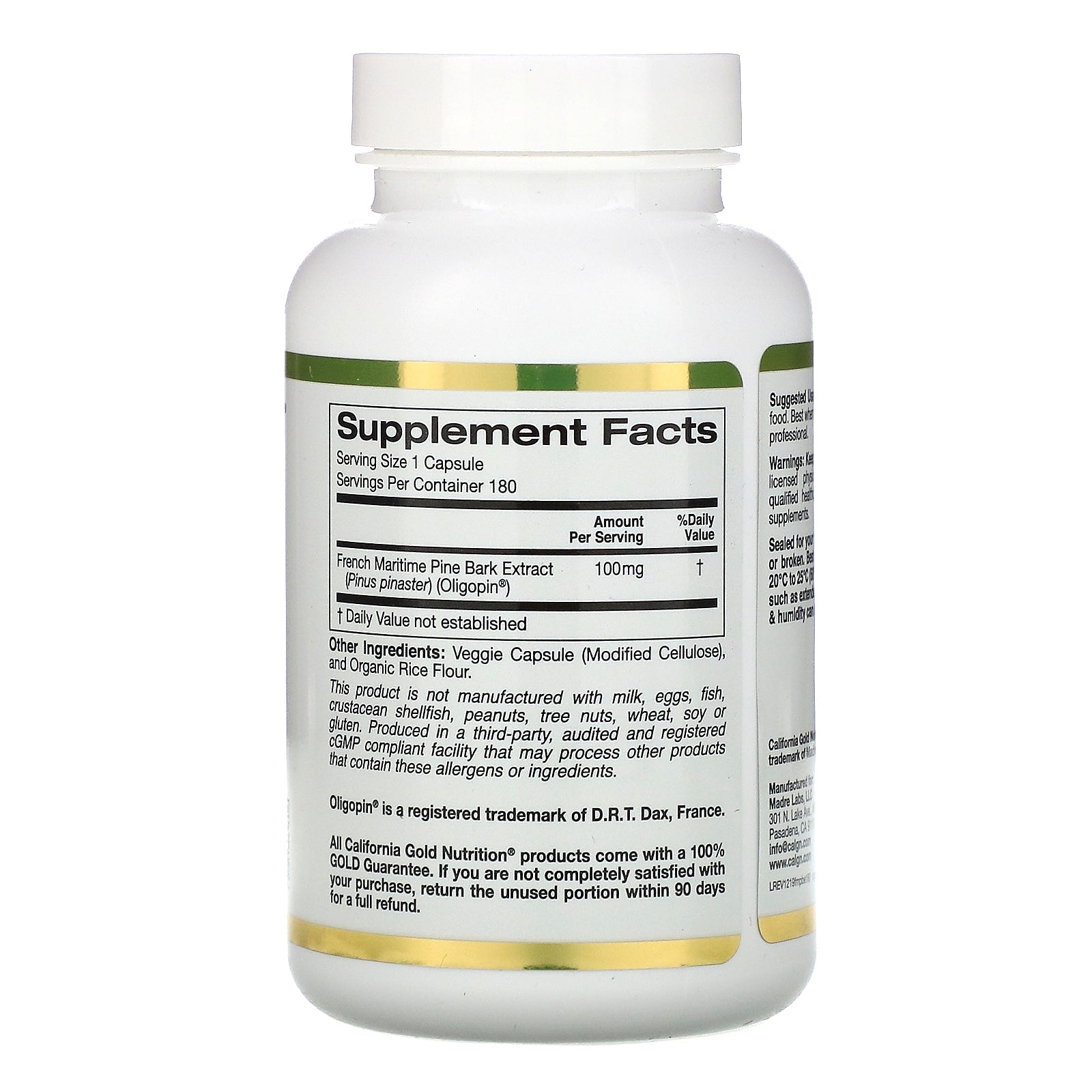 California Gold Nutrition, French Maritime Pine Bark Extract, Oligopin, Antioxidant Polyphenol, 100 mg, 180 Veggie Capsules