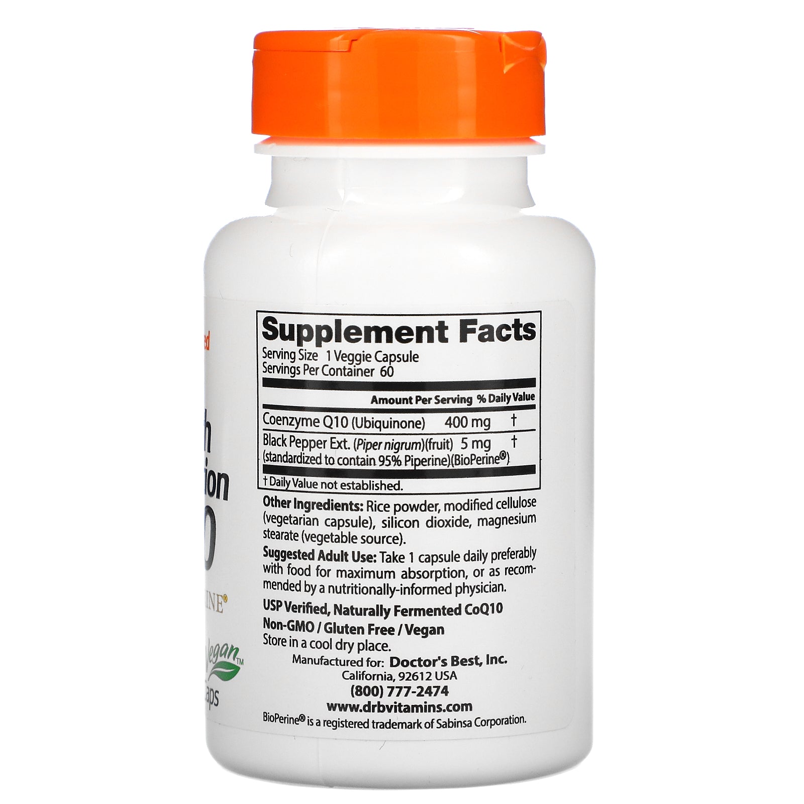 Doctor's Best, High Absorption CoQ10 with BioPerine, 400 mg, 60 Veggie Caps