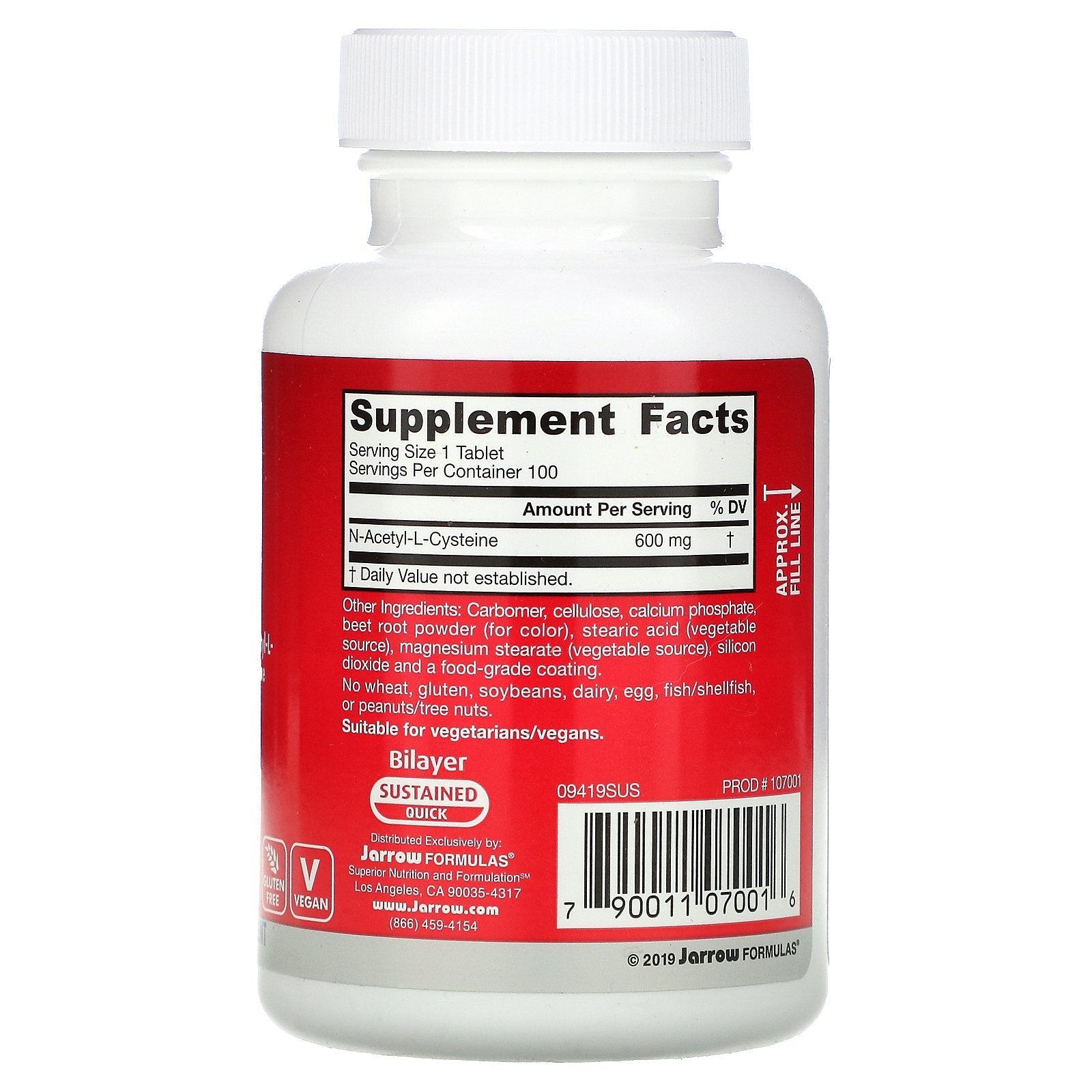 Jarrow Formulas, N-A-C Sustain, N-Acetyl-L-Cysteine, 600 mg, 100 Tablets