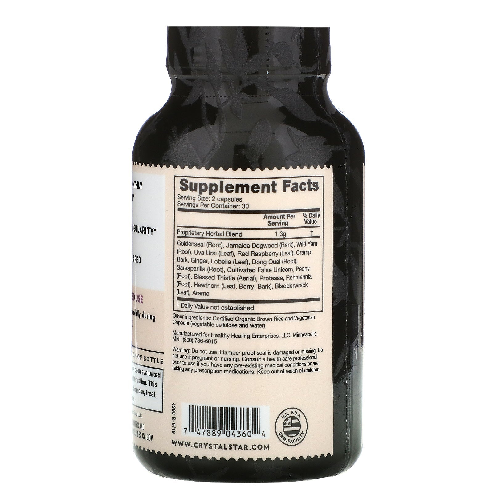 Estd 1978 Menstrual Support 17 Whole Herbs Non-GMO Product Gluten Free Vegetarian Friendly 3rd Party Tested Dietary Supplement Relieves Monthly Discomfort Promote Regularity Cramp Bark & Red RaspberrySugg. UseTake 2 capsules, 2-3 times daily, during menstruation as needed.Other IngredientsCertified organic brown rice and vegetarian capsule (vegetable cellulose and water).Supplement FactsServing Size: 2 Capsules Servings per container: 30 Amount Per Serving: %DV Proprietary Herbal Blend Goldenseal (Root), Jamaica Dogwood (Bark), Wild Yam (Root), Uva Ursi (Leaf), Red Raspberry (Leaf), Cramp Bark, Ginger, Lobelia (Leaf), Dong Quai (Root), Sarsaparilla (Root), Cultivated False Unicorn, Peony (Root), Blessed Thistle (Aerial), Protease, Rehmannia (Root), Hawthorn (Leaf, Berry, Bark, Bladderwrack (Leaf), Arame 1.3 g † † Daily Value not established.DisclaimerWhile VitaminsUK strives to ensure the accuracy of its product images and information, some manufacturing changes to packaging and/or ingredients may be pending update on our site. Although items may occasionally ship with alternate packaging, freshness is...