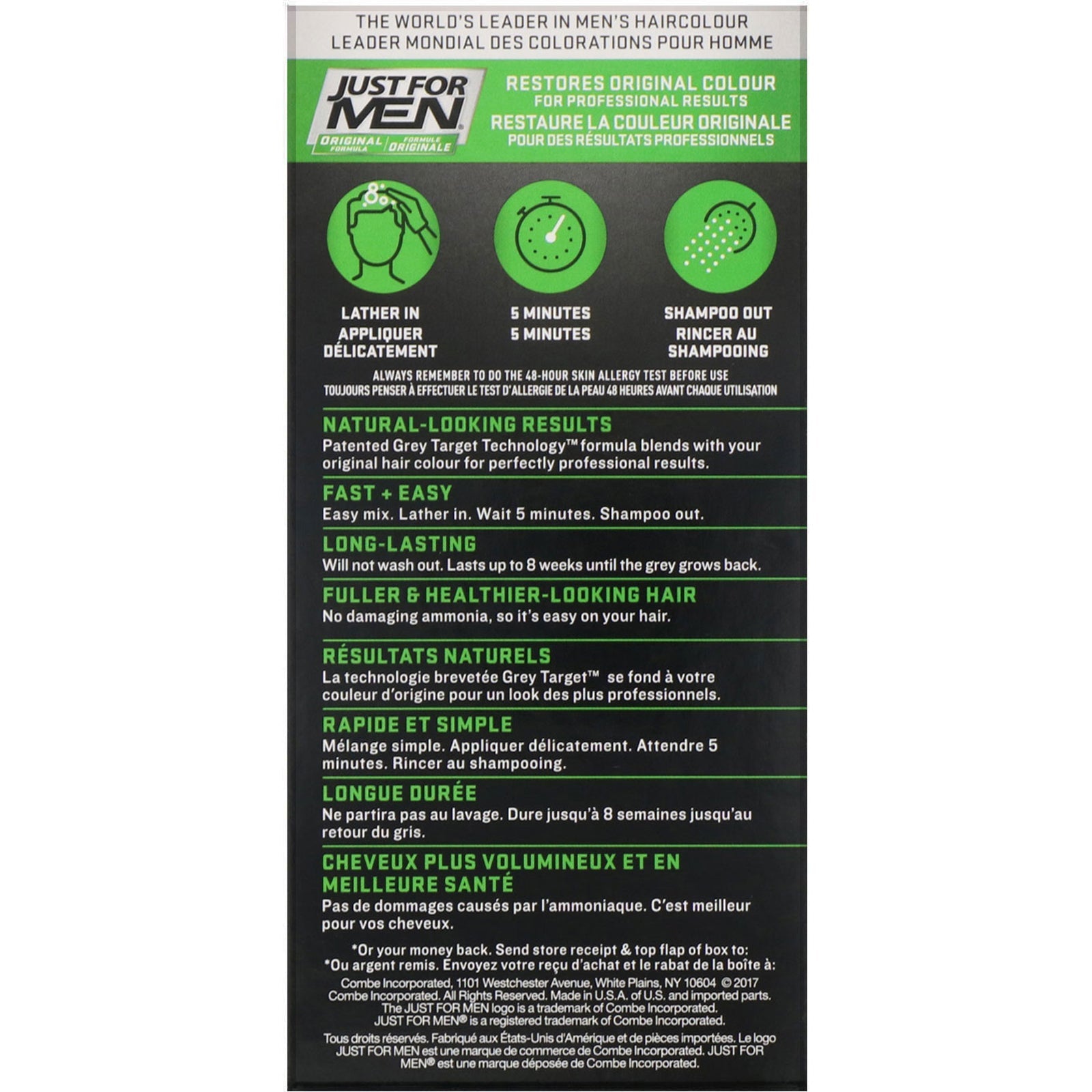 100% Natural Look 5 Min Restores Original Color For Professional Results Easy & Fast Shampoo-In Haircolor Lasts Up to 8 Weeks The World's Leader in Men's Haircolor Natural-Looking Results - Patented Gray Target Technology formula blends with your orig