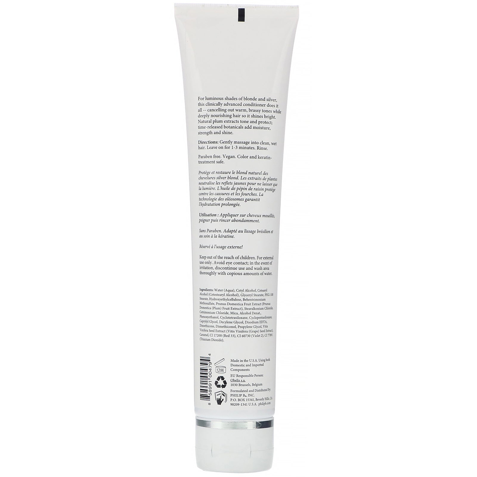 Tone Correcting Brightening Eliminates Brassiness Blond, Gray, Silver Hair Paraben Free Vegan Color and Keratin-Treatment Safe For luminous shades of blond and liver, this clinically advanced conditioner does it all -- cancelling out warm, brassy tones wh