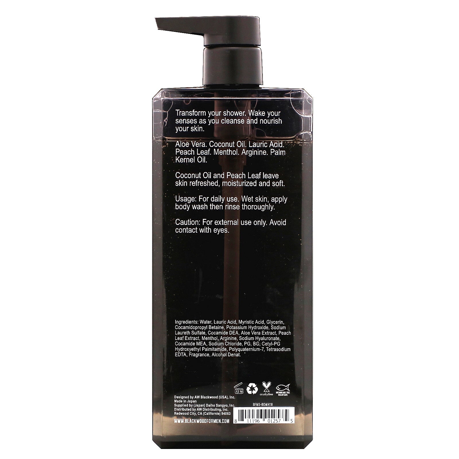 Designed to Cleanse, Restore & Protect Men's Skin Menthol to Invigorate, Cool & Clarify Aloe Vera & Coconut Oil to Moisturize & Heal Peach Leaf to Stimulate Cell Repair Arginine to Fight Wrinkles & Damage Pump Dispenses Only What You N