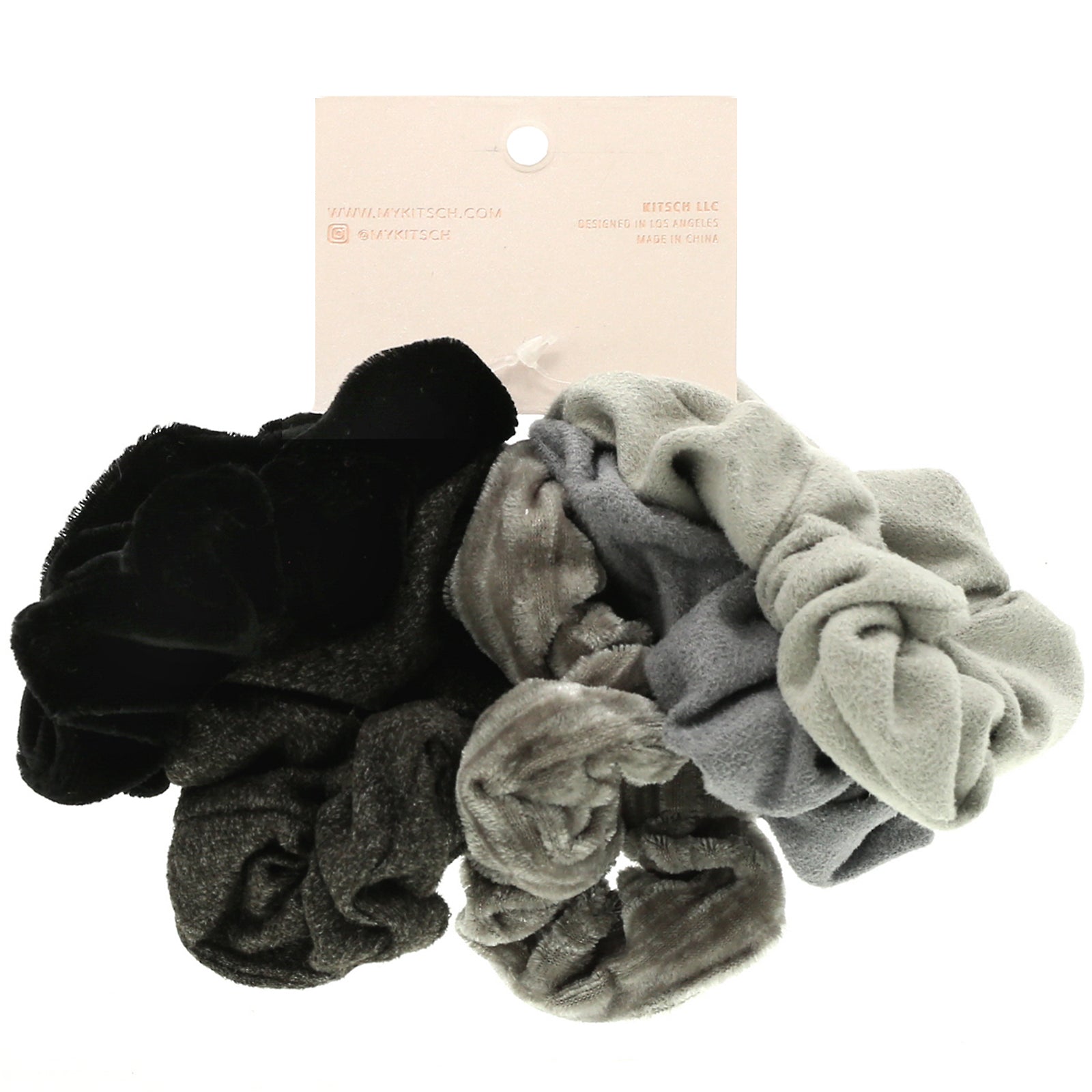 Kitsch, Velvet Scrunchies, Black/Gray, 5 Count
