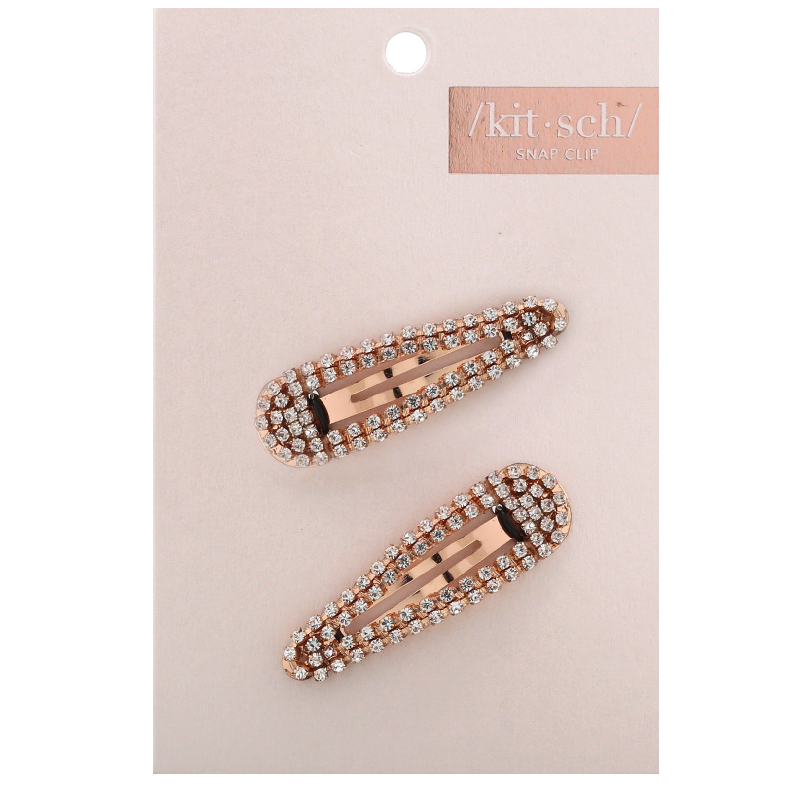 Kitsch, Rhinestone Snap Clips, Rose Gold, 2 Pieces
