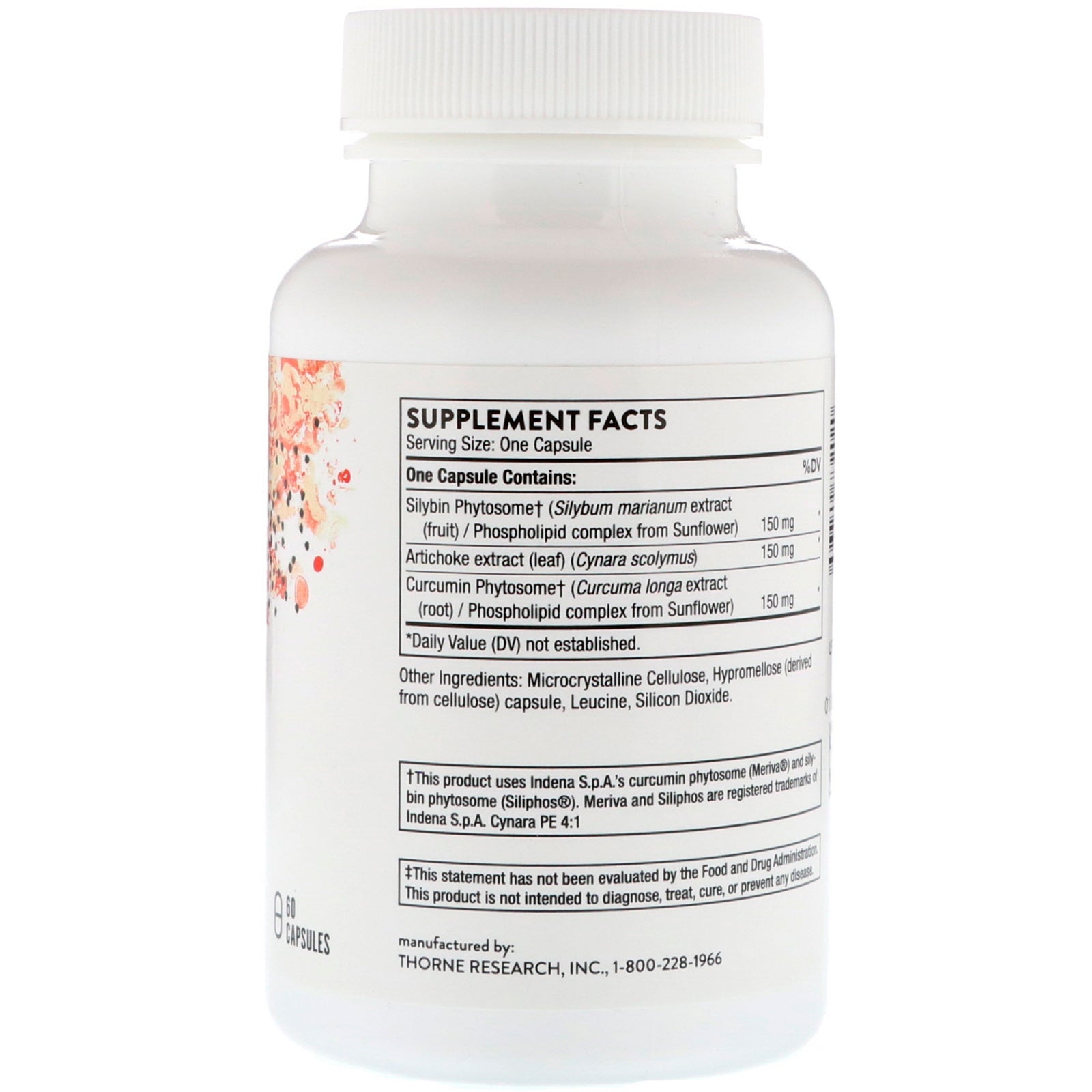 Serving Size: One Capsule One Capsule Contains: % DV Silybin Phytosome (Silymarin marianum extract (fruit) / Phosphatidylcholine complex from Sunflower) 150 mg * Artichoke extract (leaf) (Cynara scolymus) 150 mg * Curcumin Phytosome† (Curcuma longa extract (root) / Phosphatidylcholine complex) 150 mg * *Daily Value (DV) not established. †This product uses Indena S.p.A.'s curcumin phytosome (Meriva) and silybin phytosome (Siliphos). Meriva and Siliphos are registered trademarks of Indena S.p.A. Cynara PE 4:1Disclaimer