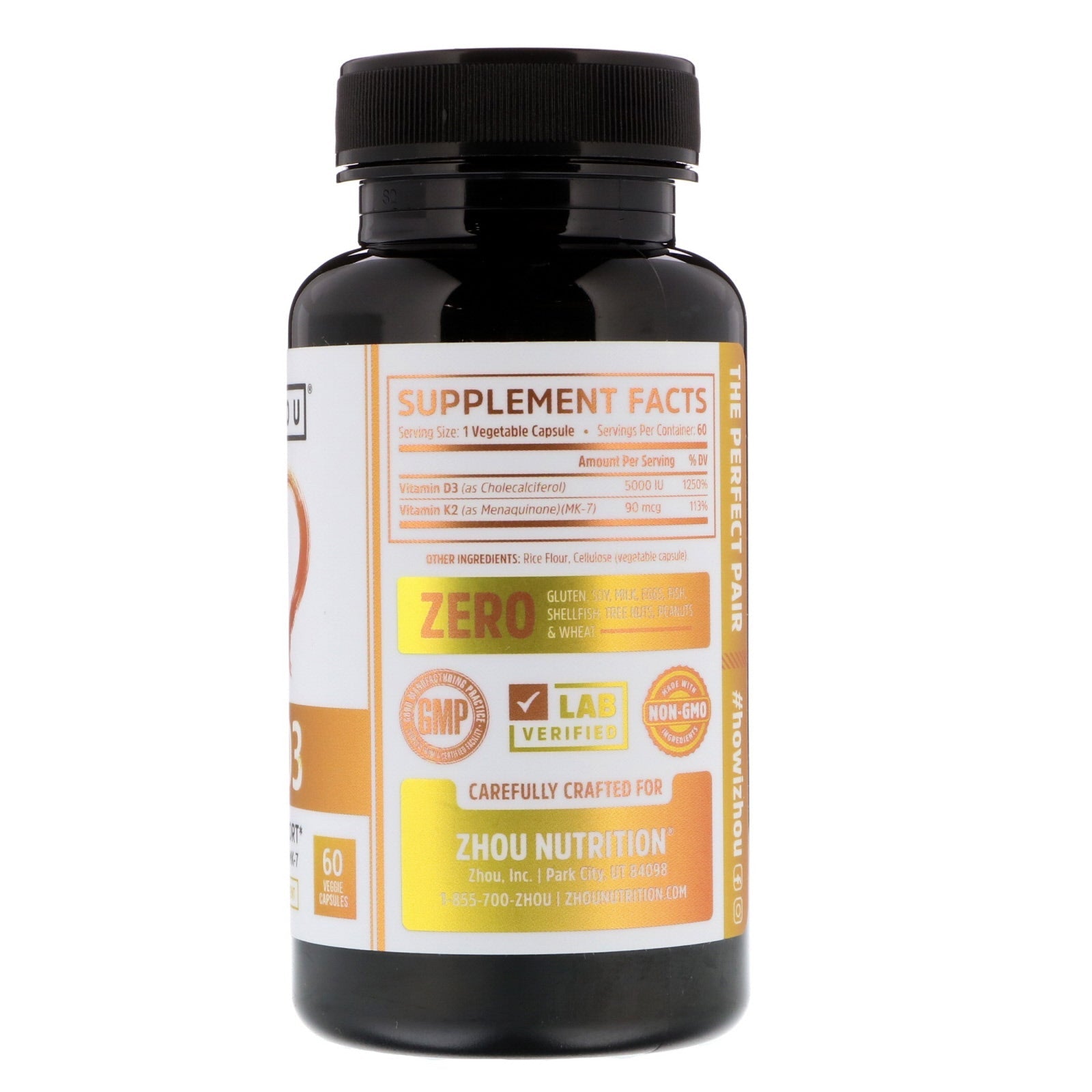 Zhou Nutrition, K2 + D3, 2-In-1 Support, 60 Veggie Capsules