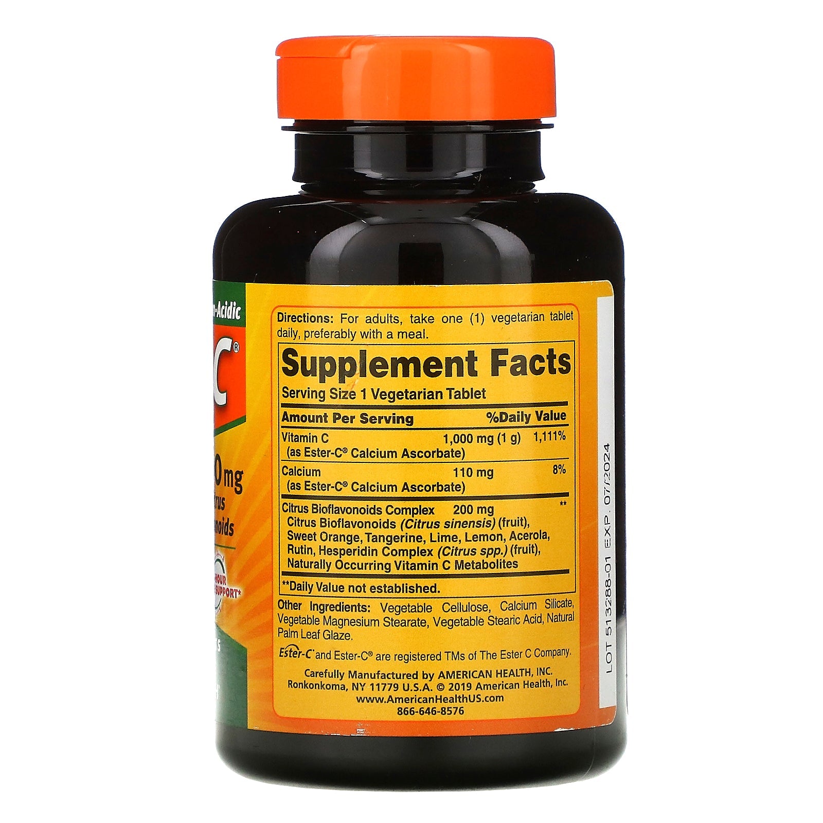 Gentle and Non-Acidic Vegetarian With Citrus Bioflavonoids 24-Hour Immune Support Dietary Supplement Non-GMO Suitable for Vegans Ester-C ® is a unique, breakthrough Vitamin C formula containing naturally occurring metabolites. Metabolites help enhance the retention of Vitamin C by your white blood cells, an important part of your immune system. Ester-C ® 's water-based manufacturing process neutralizes pH, making it non-acidic and gentle on the stomach. In a daily 1,000 mg dose, Ester-C ® delivers 24-hour immune support...so once a day is all you need. Added Citrus Bioflavonoids may help your body better absorb and utilize Vitamin C.Sugg. UseFor adults, take one (1) vegetarian tablet daily, preferably with a meal.Other IngredientsVegetable cellulose, calcium silicate, vegetable magnesium stearate, vegetable stearic acid, natural pam leaf glaze. No gluten, no yeast, no wheat, no milk or milk derivatives, no lactose, no soy, no egg, no grapefruit, no sugar, no artificial color, no artificial flavor,...
