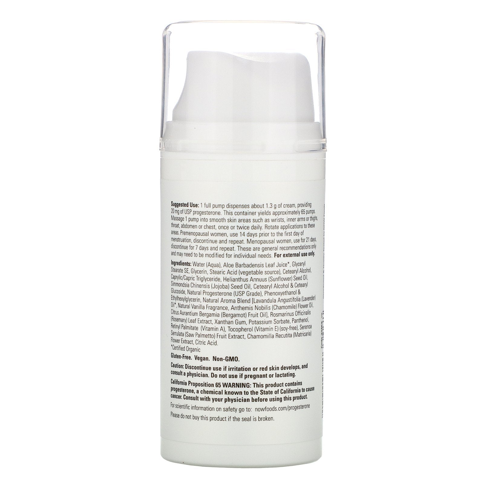 20 mg of Natural Progesterone Per Pump No Artificial Colors No Artificial Fragrances Paraben Free Gluten Free Vegan Non-GMO NOW® Solutions Products are Not Tested on Animals