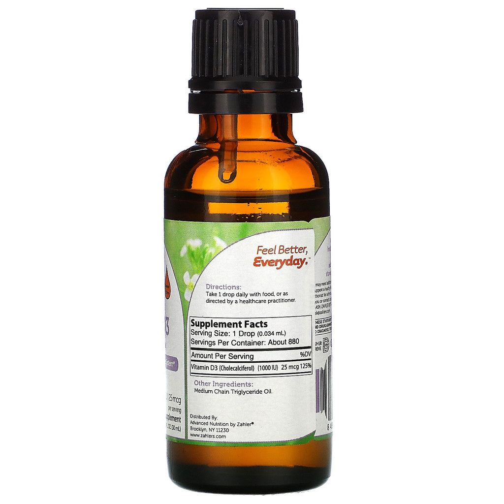 Zahler, Vitamin D3, Advanced D3 Formula, 1,000 IU, 1 fl oz (30 ml)