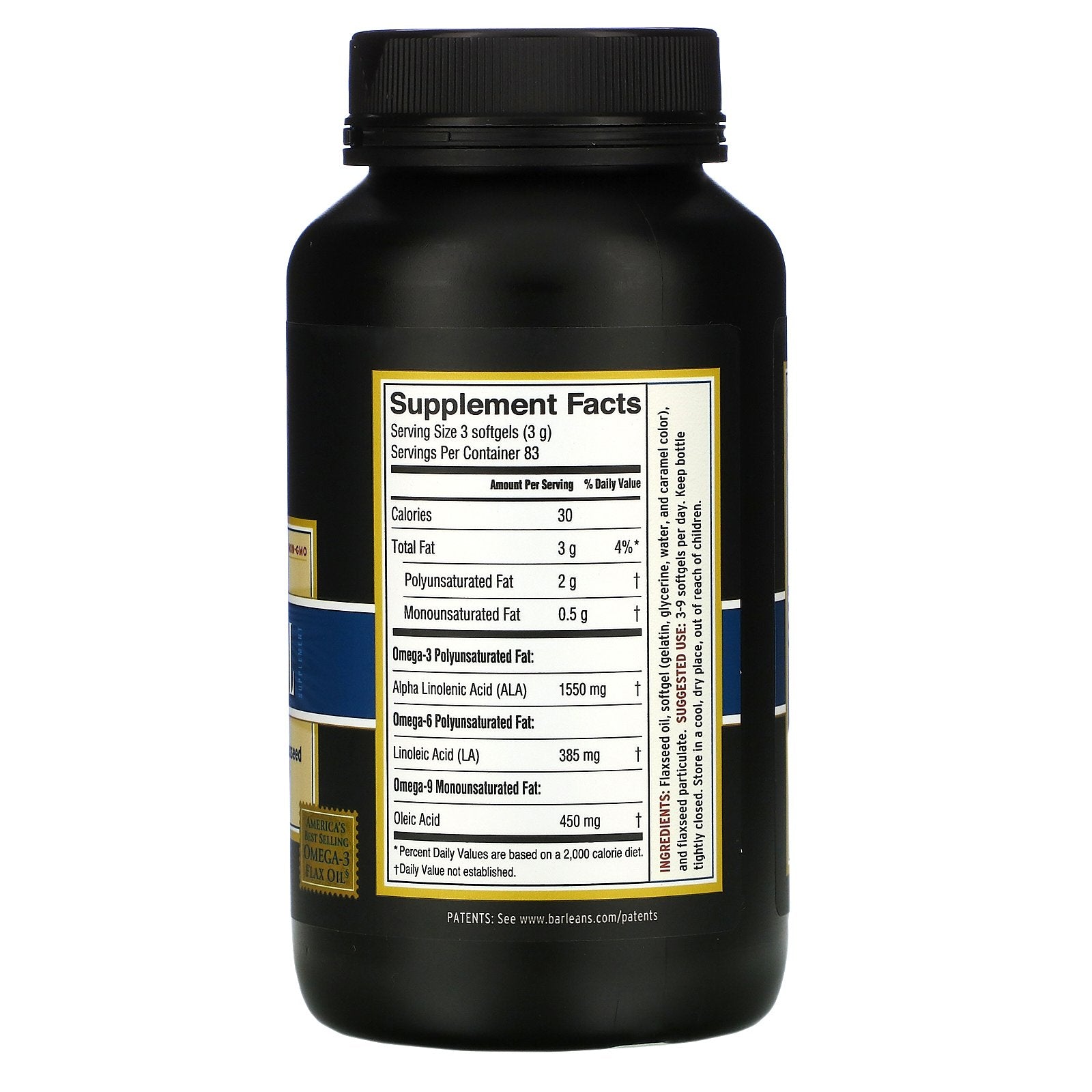 Estd 1989 Pathway to a Better Life Gluten Free Non-GMO Made with North American Flaxseed Freshly Cold Pressed America's Best Selling Omega-3 Flax Oil§ From Our Family to Yours FreshTech - Patented Softgel Technology Fresh Cold-Pressed. Packed with Omega-3 & Lignans. We've left in some of the flax particulate, which provides powerful antioxidant flax lignans. High in ALA, a Vital Omega-3 Fatty Acid Pure & Unrefined, with Lignan Flax Particulate North American Grown, Non-GMO & Gluten Free § AC Nielsen Syndicated Market DataSugg. Use3-9 softgels per day.Other IngredientsFlaxseed oil, softgel (gelatin, glycerine, water, and caramel color), and flaxseed particulate.Supplement FactsServing Size: 3 softgels (3 g) Servings Per Container: 83 Amount Per Serving % Daily Value Calories 30 Total Fat 3 g 4%* Polyunsaturated Fat 2 g † Monounsaturated Fat 0.5 g † Omega-3 Polyunsaturated Fat: Alpha Linolenic Acid (ALA) 1550 mg † Omega-6 Polyunsaturated Fat: Linoleic Acid (LA) 385 mg...