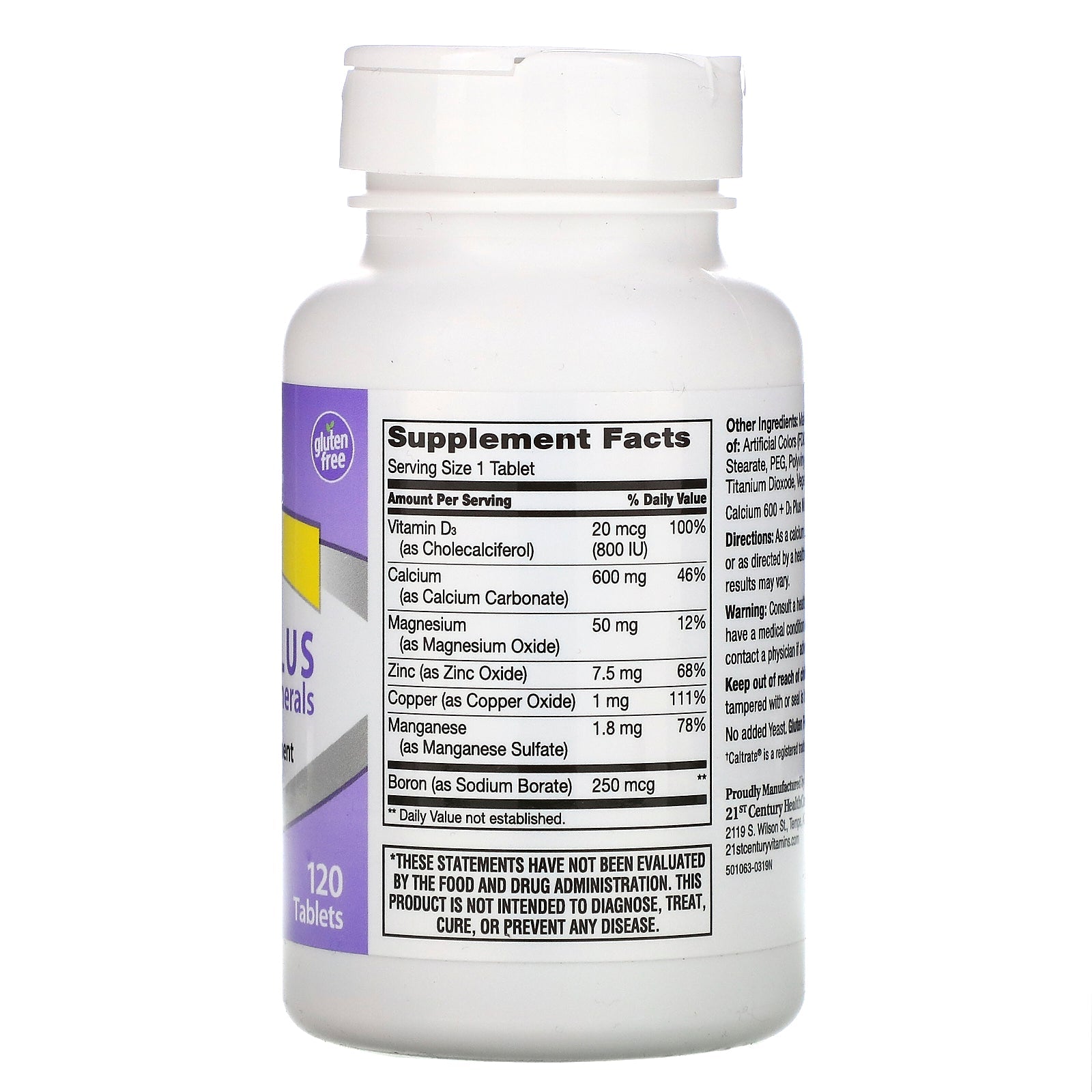21st Century, 600+D3 Plus Minerals, 120 Tablets