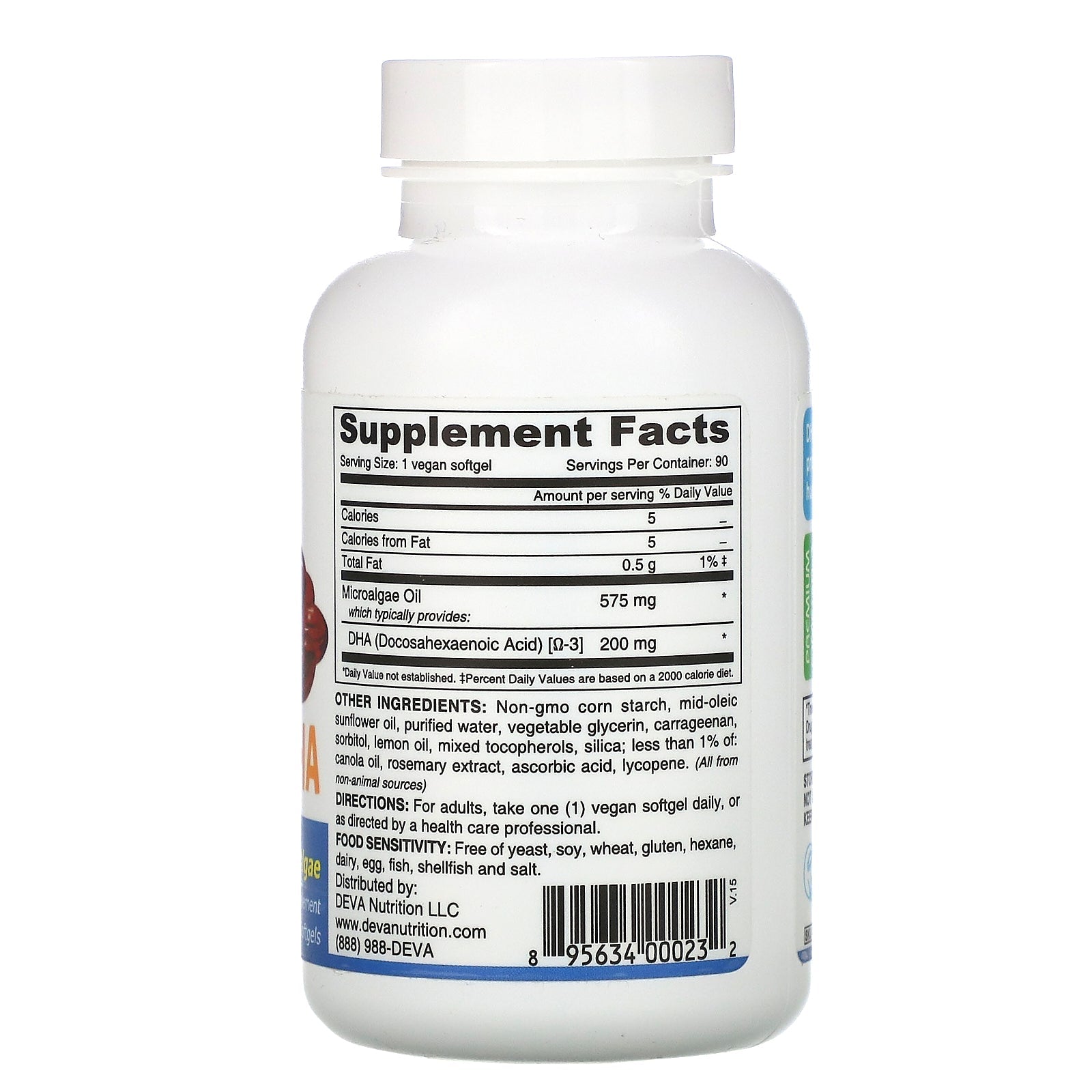 Deva, Vegan Omega-3 DHA, 90 Vegan Softgels