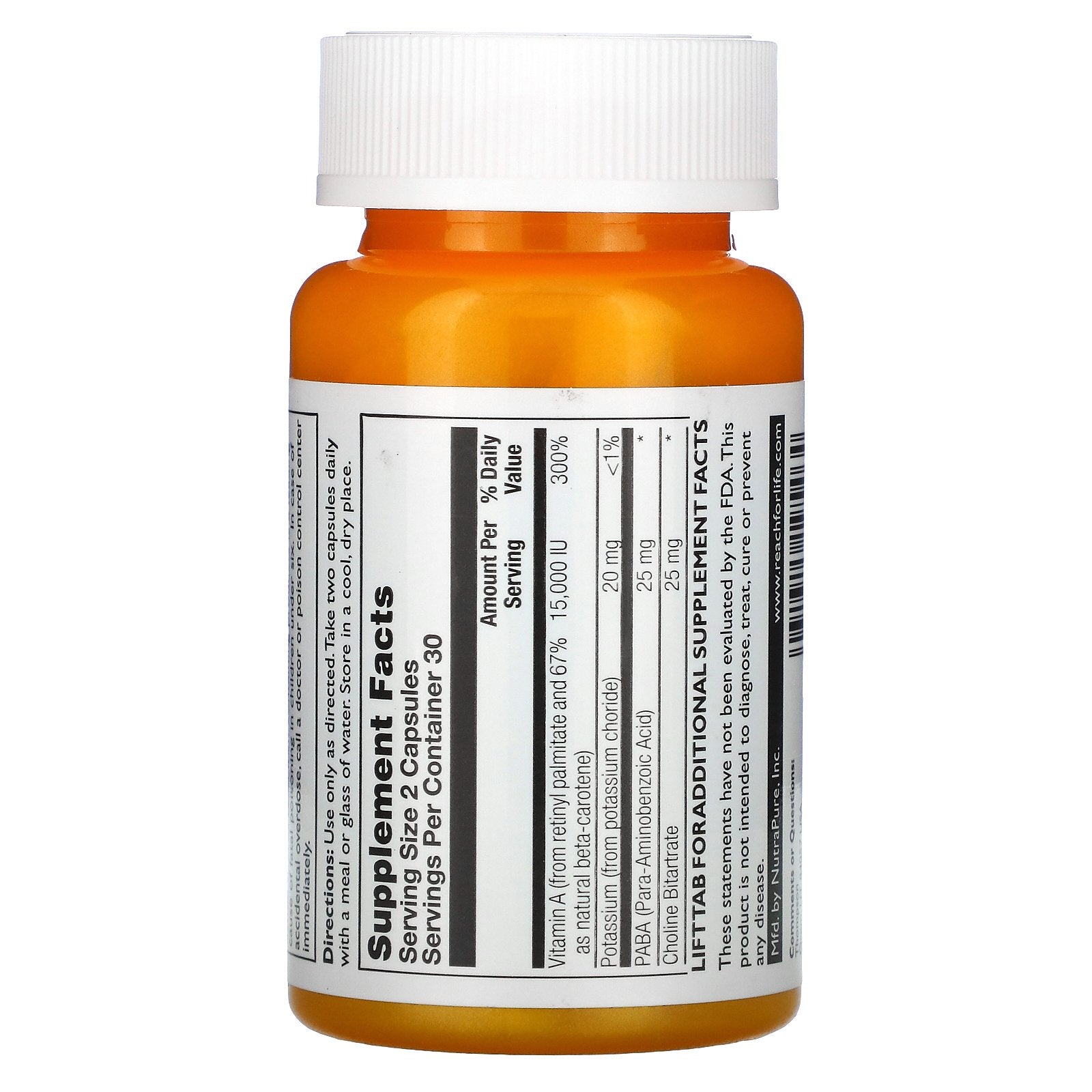 Serving Size: 2 Capsules Servings Per Container: 30 Amount Per Serving % DV Vitamin A (from retinyl palmitate and 67% as natural beta-carotene) 15,000 IU 300% Potassium (from potassium chloride) 20 mg <1% PABA (Para-Aminobenzoic Acid) 25 mg * Choline Bitartrate 25 mg * Vitamin C (from ascorbic acid, rose hips and acerola cherry) 300 mg 500% Vitamin D (from cholecalciferol) (d-3) 400 IU 100% Vitamin E (from natural source d-alpha tocopheryl succinate) 200 IU 667% Thiamine (from thiamine mononitrate) (B-1) 50 mg 3,333% Riboflavin (B-2) 50 mg 2,941% Niacin (from niacinamide) (B-3) 50 mg 250% Vitamin B-6 (from pyridoxine HCI) 50 mg 2,500% Folate (from Folic Acid) 400 mcg 100% Vitamin B-12 (from cyanocobalamin) 50 mcg 833% Biotin 300 mcg 100% Pantothenic Acid (from d-calcium pantothenate) 50 mg 500% Calcium (from calcium carbonate, calcium amino acid chelate) 200 mg 20% Iron (from iron fumarate) 18 mg 100% Iodine (from kelp, potassium iodide) 225 mcg 150% Magnesium (from magnesium oxide, magnesium amino acid chelate) 100 mg 25% Zinc (from zinc amino acid chelate) 15 mg 100% Selenium (from yeast free selenomethionine) 100 mcg 143% Copper (from copper gluconate) 1 mg 50% Manganese (from manganese gluconate) 6 mg 300% Chromium (from chromium polynicotinate [chrome mate] 200 mcg 167% Sodium 5 mg <1% *Daily value not established.Disclaimer