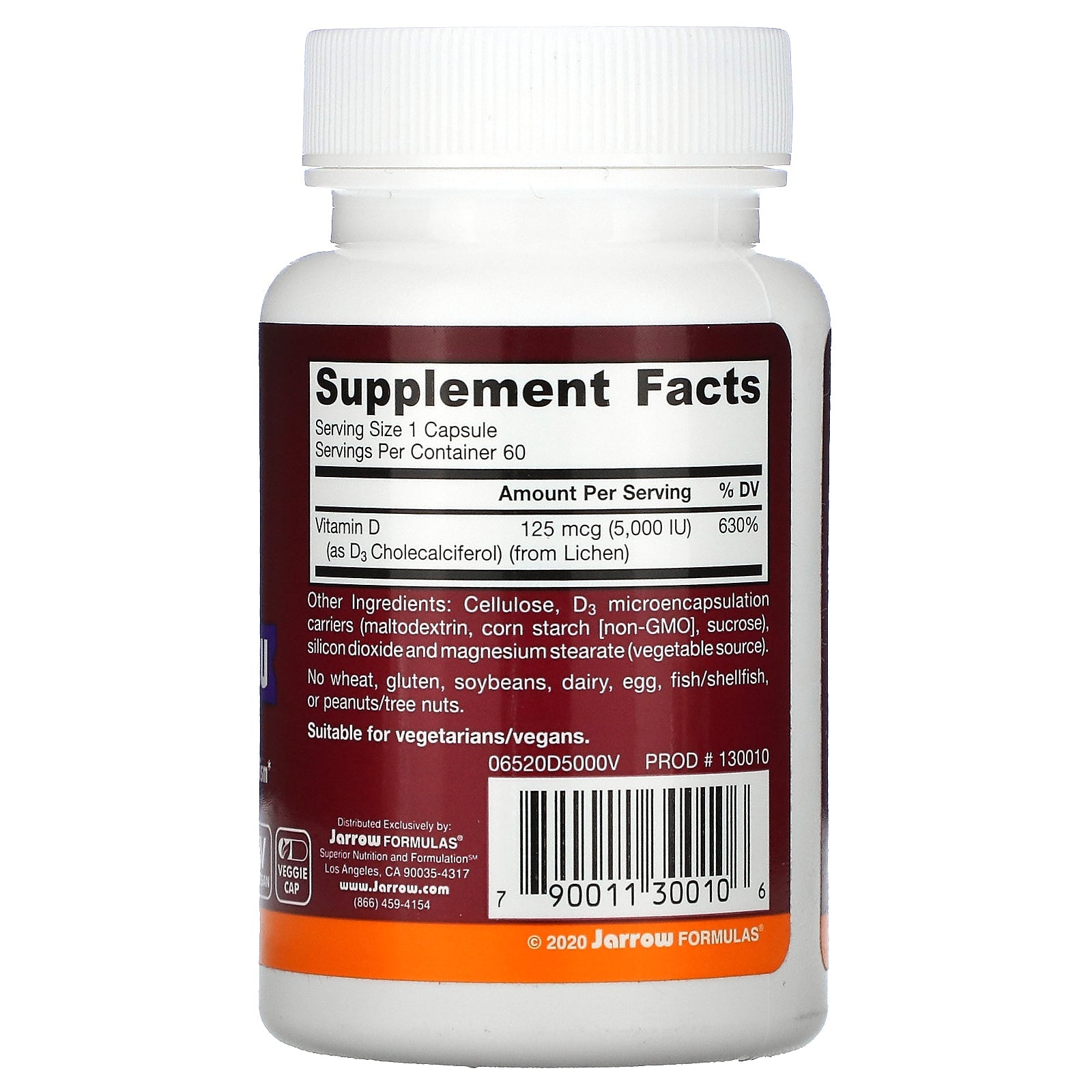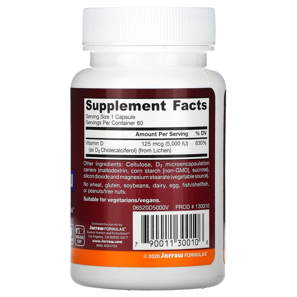 Jarrow Formulas, Vegan D3, 125 mcg (5,000 IU), 60 Veggie Caps