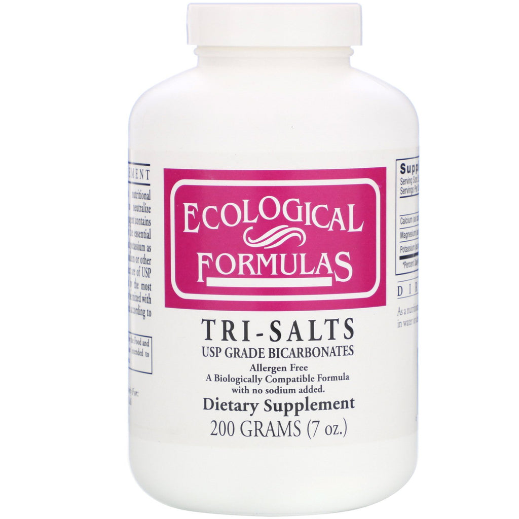 USP Grade Bicarbonates Allergen Free A Biologically Compatible Formula with no Sodium Added A Dietary Supplement USP Grade Tri-Salts is a nutritional supplement especially designed to neutralize increased acidity. This unique buffering agent contains nutritionally significant amounts of the essential macrominerals calcium, magnesium and potassium as carbonates and bicarbonates without sodium or other salts. The minerals used in this product are of USP grade quality and are well tolerated by the most sensitive individuals. The Tri-Salts may be mixed with Vitamin C crystals and the pH adjusted according to individual needs.Sugg. UseAs a nutritional supplement, mix one-half teaspoon in water or desired liquid.Other IngredientsSupplement FactsServing Size: 2.5 grams (approx. 1/2 Teaspoon) Serving Per Container: 80 Amount Per Serving %Daily Value* Calcium (calcium carbonate) 450 mg 35% Magnesium (as magnesium carbonate) 250 mg 60% Potassium (as potassium bicarbonate) 99 mg 3% *Percent Daily Values are Based on a 2,000 Calorie Diet.DisclaimerWhile...