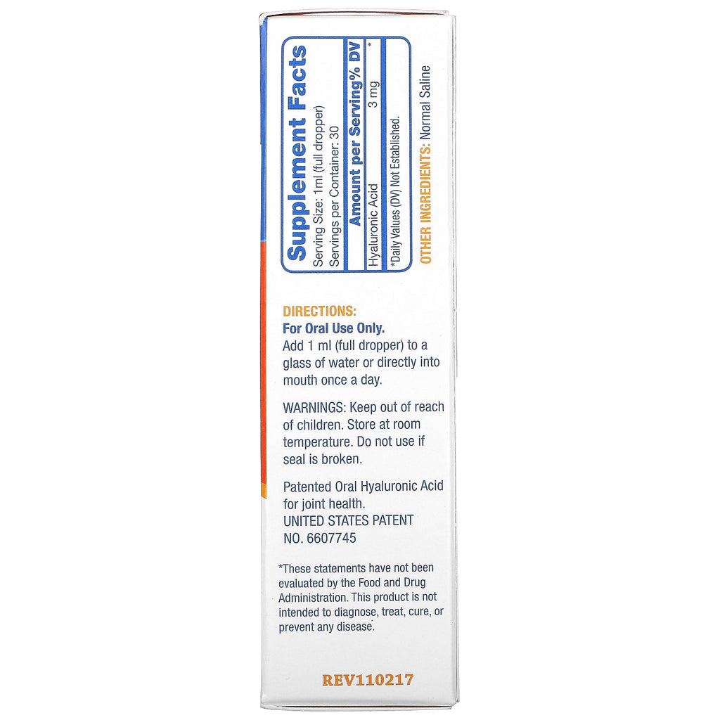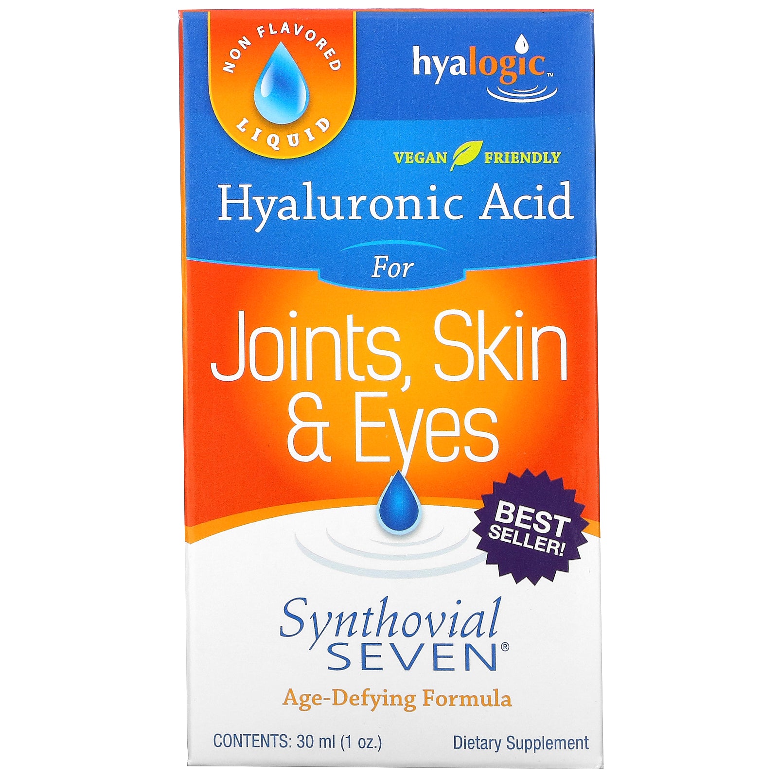 Non-Flavored Liquid Vegan Friendly Age-Defying Formula Overall Joint, Skin & Eye Health Dietary Supplement Hyaluronic Acid In The Body Scalp Tissue & Hair Follicles - Shaft & Follicle Skin - Epidermis Eyes - Vitreous Humor Gums - Connective Tissue Joints - Synovial Fluid You can maintain these proper functions with Synthovial Seven: Healthy Joints and Normal Mobility Healthy Skin and Lips Clear, Healthy Eyes Healthy Hair and Scalp Hyaluronic Acid exists naturally in all living organisms. In the body, it is found in the greatest concentration in the synovial fluid of the joints for lubrication, the fluid of the eye and most abundantly in the skin. Why choose Synthovial Seven? Easy To Use Liquid Form High Molecular Weight for Supports Skin and Joints Convenient - Only Once per Day Vegan Friendly - Non-Animal Derived Gluten FreeSugg. UseFor oral use only. Add 1 ml (full dropper) to a glass of water...